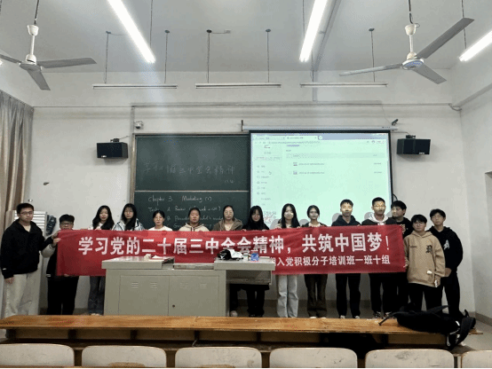 为深入学习贯彻中国共产党第二十届中央委员会第三次全体会议精神,进一步激发入党积极分子的爱国情怀与使命担当。2024年11月18日我院党校指导老师张万俊与第50期入党积极分子培训班一班十组成员在教学楼举办了一场以“学习党的二十届三中全会精神,共筑中国梦”为主题的实践活动。