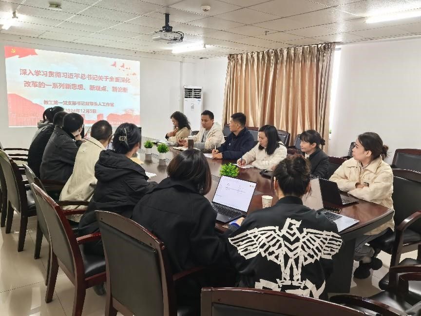 2024年12月5日中午,信息工程学院教工第一支部组织了一次专题学习会议,深入学习贯彻习近平总书记关于全面深化改革的一系列新思想、新观点、新论断。此次学习活动旨在引导支部党员深刻理解全面深化改革的重要性,并将学习成果转化为推动工作的实际行动。