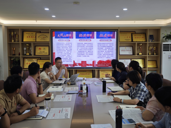 活动开始,由吴乐领学了习近平总书记关于弘扬大别山精神、抗洪精神、抗疫精神的重要论述,围绕三大精神的定义、背景和意义展开讲解。党总支副书记张平表示,全体党员要从三大精神中持续汲取丰厚滋养,不断强化党性修养,筑牢信仰之基,一要学习大别山精神“勇当前锋”的锐气,在学院教学改革、学科建设中敢于探索、勇于突破;二要传承抗洪精神“顽强拼搏”的韧劲,面对发展中的瓶颈和挑战,保持定力,迎难而上;三要践行抗疫精神“举国同心”的协作理念,强化大局意识和团队精神,凝聚起推动学院内涵式发展的磅礴合力。