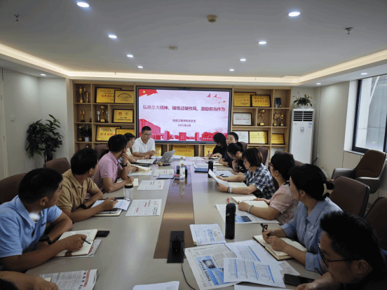 为持续深化党的优良传统教育,激励全体党员传承红色基因、勇担时代使命,6月11日学院党总支在702会议室组织开展了“弘扬三大精神、锤炼过硬作风、激励担当作为”主题党日活动,全体总支委员,学院领导,各系部、教学办、学工办负责人参加,会议由党总支组织员吴乐主持。