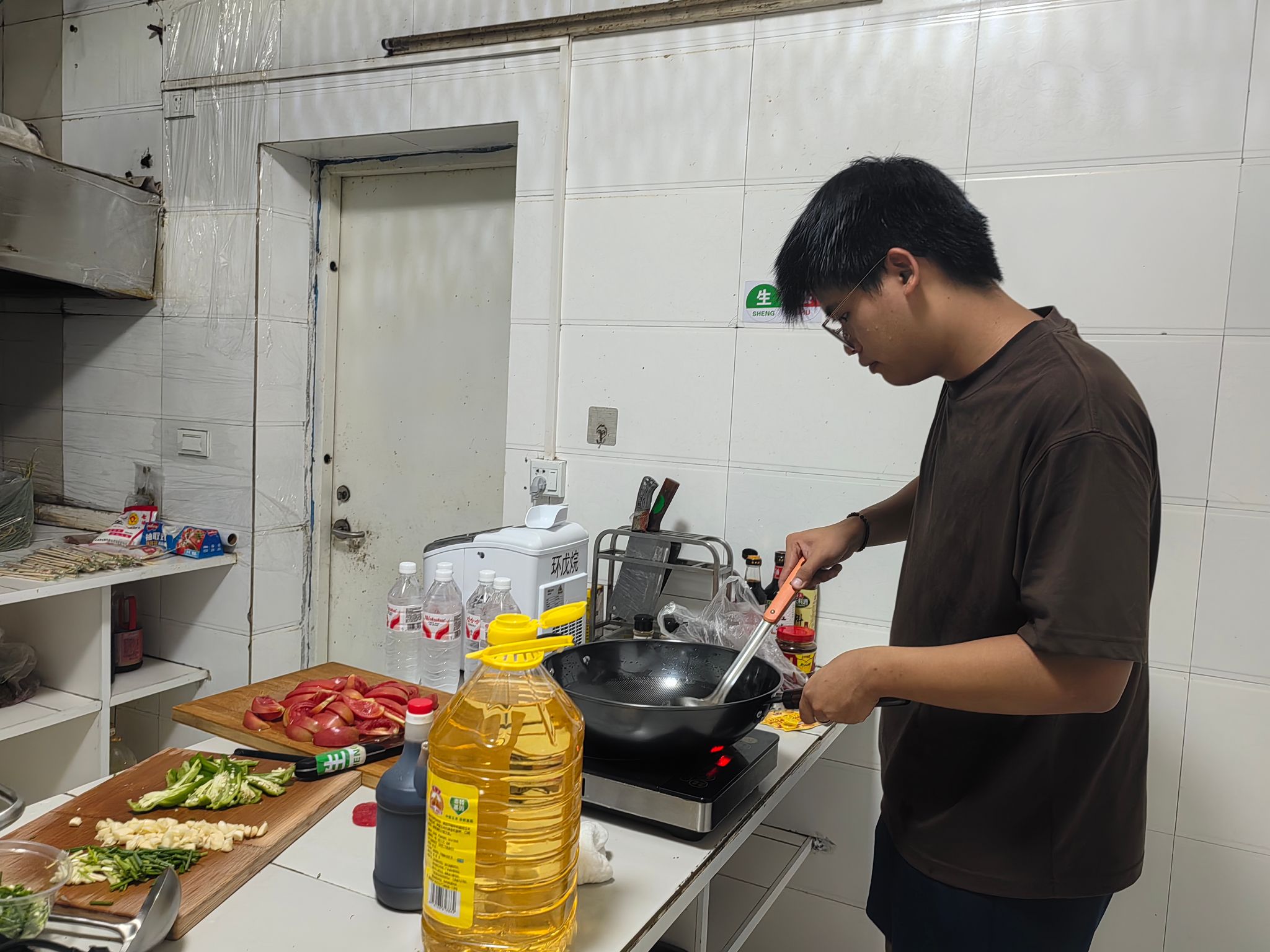 当日12点,12名队员在丹江站准时汇合。短暂整顿后,一点二十众人坐上了前往彭家沟小学的车。在一个小时的行程中,乡间小路狭窄拥挤且蜿蜒盘旋,不过有沿途可见的乡间牛群和清澈见底的丹江水。到达彭家沟小学后,队员们首先吃了导员带来的食物补充能量。随后便开始分工打扫。大家明确分工,有的负责清扫教室地面,将灰尘、纸屑等一一扫起;有的擦拭课桌椅,不放过任何一个角落,把桌椅擦得干净明亮;有的则清理校园内的杂物,将操场、花坛周边的垃圾捡起并分类处理。在打扫过程中,大家都十分认真,不怕脏不怕累。与此同时,导员前往镇上购买生活用品和食材。导员们归来后,众人开启互助做饭模式,队员们有的帮忙洗菜、择菜,有的负责生火、掌勺,大家齐心协力,共同准备晚餐。