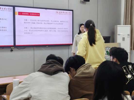 在交流环节,在互动问答中,围绕“日常学习如何嵌入思政要求”“信息青年怎样备战科技自立自强”抛出两个问题。问题一由徐大妍同学踊跃回答,她说:“做专业实验时,把严谨求实当底色,比如搞嵌入式开发,不光要代码跑通,还得追求“零误差”。小组合作时,传递协同奋斗精神,碰到难题别抱怨,带头组织讨论解决,用行动带动团队氛围,让做专业的过程就是践行思政要求的过程。”问题二由钟思雨同学应答,她说:“得从能力、思想、实践三方面准备。能力上,练核心技术攻坚能力,把数字信号处理、单片机原理这些基础打牢,参与创新创业项目,积累实战经验。思想上,得有长期奋斗的信念,知道科技自强不是一下子的事,碰到实验失败别退缩,把挫折当成长机会。实践上,从身边小事做起,让科技报国不是口号而是实际行动。”