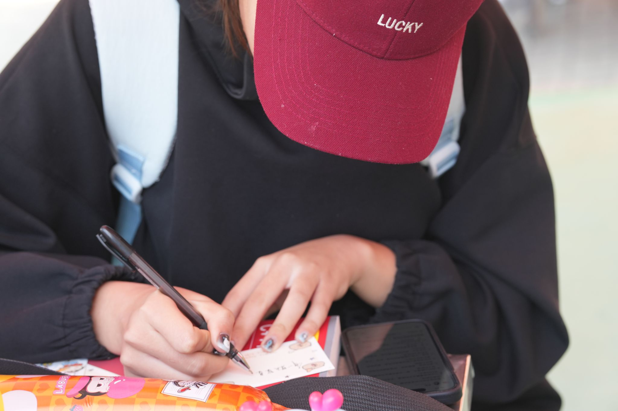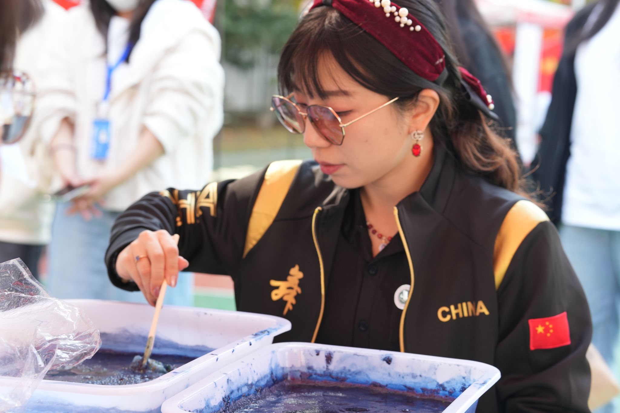 贺卡书写区同样温情满满,实践队提前备好彩笔、贴纸和信封,更贴心附上结对山区孩子的日常小故事,让寄语更有针对性。“愿你眼里有光,对世界永葆好奇”“愿这张卡片陪你度过开心时光”,百余张色彩鲜艳的卡片上,写满了师生们的真挚祝福,后续将连同爱心文具一同带去山区学校。参与者的反馈格外积极,有同学表示“动手做扎染时,才懂把非遗带进社区的意义”。这种“看得见、摸得着、能参与”的形式,不仅让传统与创意在互动中传递温暖,更吸引众多师生主动询问社区服务细节,让志愿精神真正落地生根。