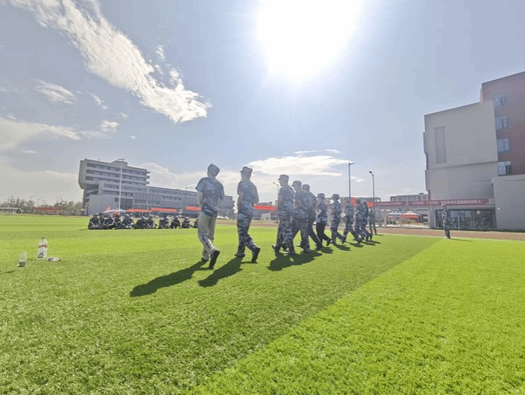 在训练场上,教官们严谨认真,以规范的动作、严格的要求带领新生开展队列训练。从立正、稍息到齐步走、正步走,每一个动作都反复打磨,每一个细节都力求精准。新生们精神抖擞,眼神坚毅,将青春的朝气与军人的纪律性融于一体,在烈日下锤炼意志,在训练中凝聚力量。