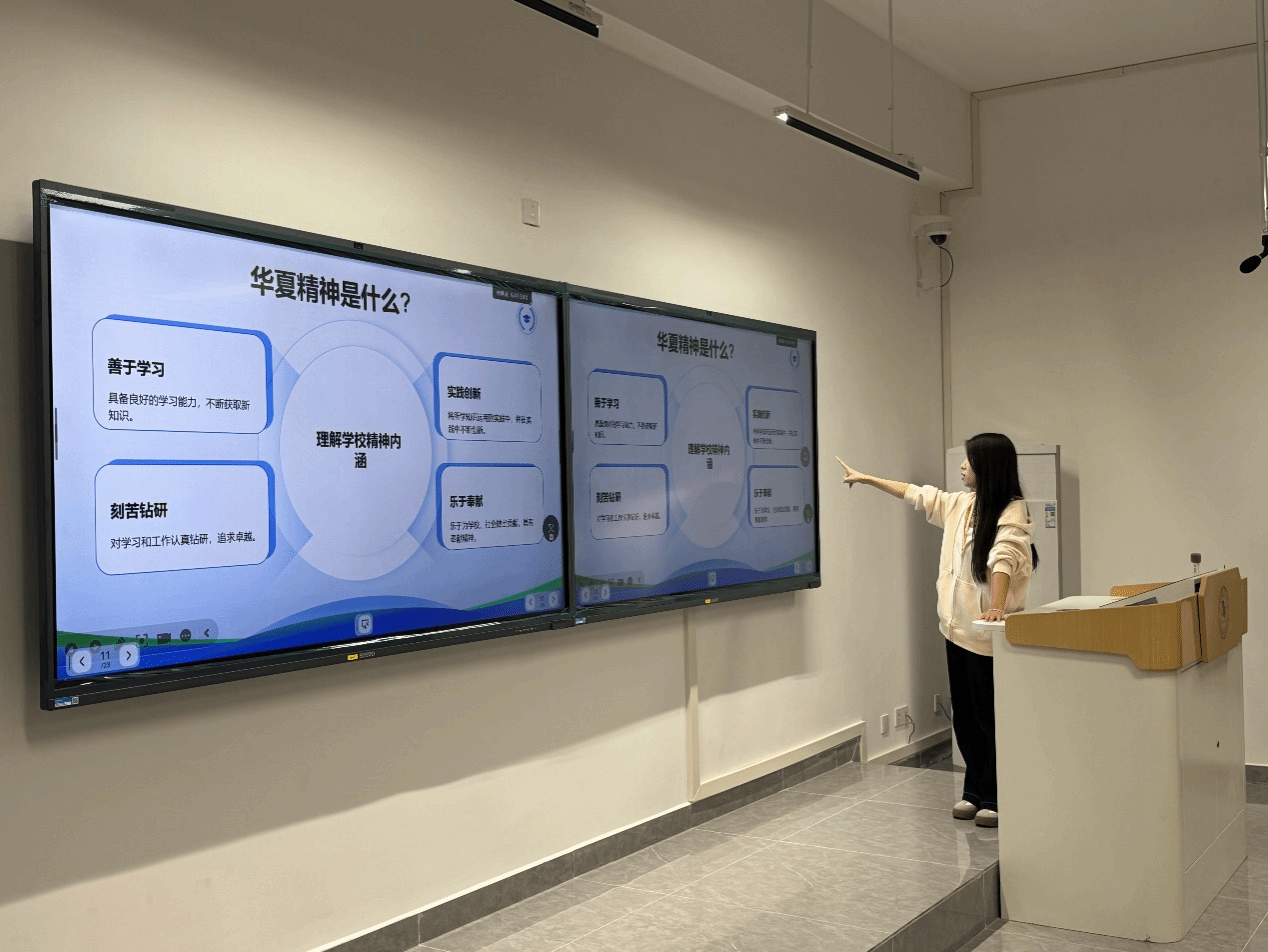 随后,主持人围绕“作为班级一份子,我们该如何参与评估”展开重点分享。她结合校园日常场景,分点明确了具体行动方向:一是聚焦课堂学习,保证满勤不迟到、上课专注不松懈,用良好的学习状态展现班级学风;二是关注校园生活,主动维护教室、宿舍的整洁,不随手丢弃垃圾、不杂乱堆放物品,营造清爽的集体环境;三是践行校园礼仪,遇见师长主动问好、遇到外来访客礼貌回应,在细节处展现华夏学子的素养。