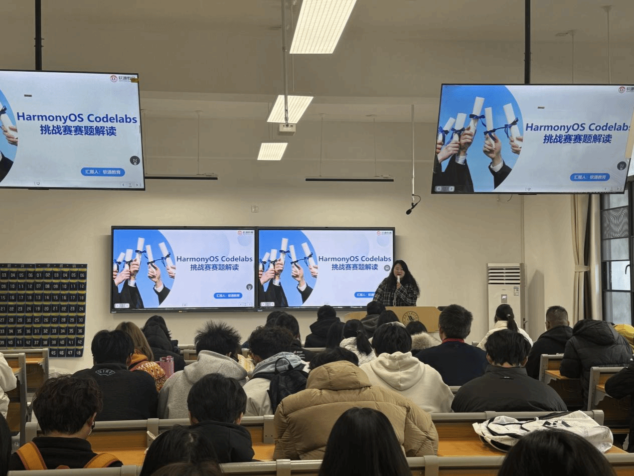 11月19日,大数据1251班于教学楼B311教室举办 HarmonyOS Codelabs 挑战赛主题班会,江雨晴老师主持,以“深耕开源鸿蒙,打造创新应用”为核心,聚焦技术创新与赛事实战,为同学们备赛凝聚共识、明晰路径。