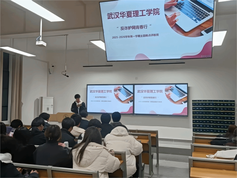 为增强教育实效,班会上还精心策划了“反诈情景模拟擂台赛”。由同学自编自导自演,现场还原“奖学金诈骗电话”、“游戏账号交易陷阱”等典型场景。表演者演技在线,“骗子”的话术极具迷惑性;台下观众则化身“智囊团”,争相指出破绽、提出应对策略。在紧张活泼的互动中,反诈知识不再是枯燥的条文,而变成了可感、可知、可用的实战技能。