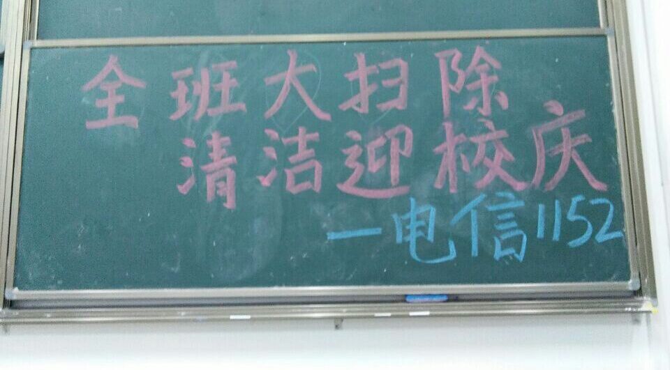 我系电信1152班以“全班大扫除,清洁迎校庆”的口号于16日晚在辅导员彭贝贝的带领下,以及各班班委的号召下,进行了对自习室的大扫除活动。