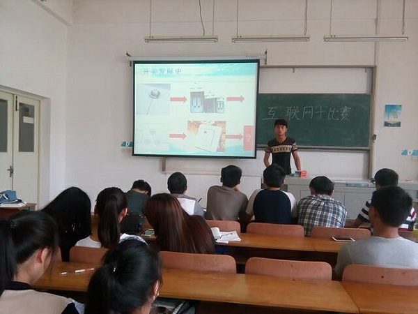 本次复赛,一改初赛笔试形式,转而由参赛学生用ppt演讲形式,将自己的“互联网+”创意展示出来。不仅主题各异,而且都充满了无限的创意,其中有网上预定电梯、 网上购水票、智能wifi开关、大学社交地图app 等创意想法。并且都利用专业知识从实用性和可行性上进行评估。将想法、创意变成可行的方案。更有同学提出了“互联网+恋爱”、“互联网+智能生活”等方案。