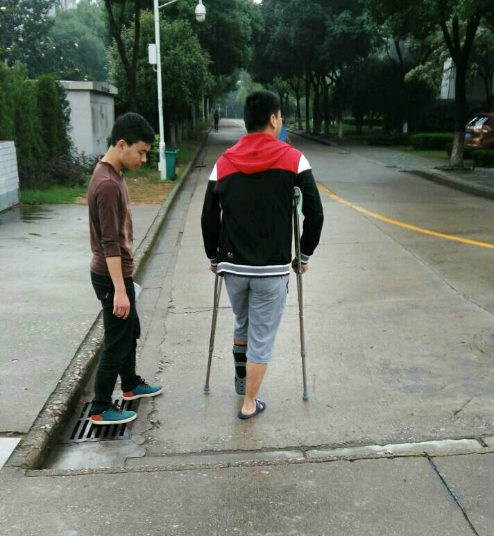 自动化1151班朱继彬同学由于腿部受伤,手术之后无法正常行走。为了帮助朱继彬同学正常上课,不影响日常学习和期末考试,辅导员号召大家成立帮扶小组,照顾朱继彬同学的日常生活和学习。同学们踊跃参与,最终选出12名学生参与帮扶活动,列出值日表,从星期一至星期五,每节课都安排相应人员进行接送。在上下课的途中,为防止朱继彬同学摔倒对腿部造成二次伤害,帮扶人员选择在上下楼梯时先疏通楼道,再将他送至教室,并将他每堂课的座位安排在面向黑板左手边第三排,方便他上课听讲,做笔记。