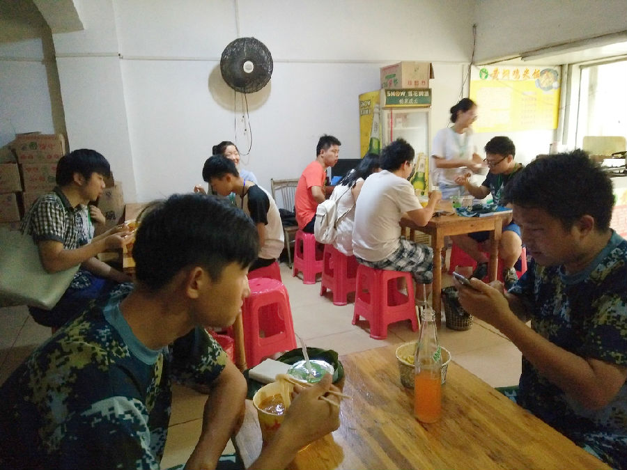检查完内务之后,我院辅导员及学长班主任一起吃早餐,欢度中秋佳节。就如同我们常说的“我们是一个Team”。简单的吃完早餐后向导和彭导的身影再次出现在军训场地。