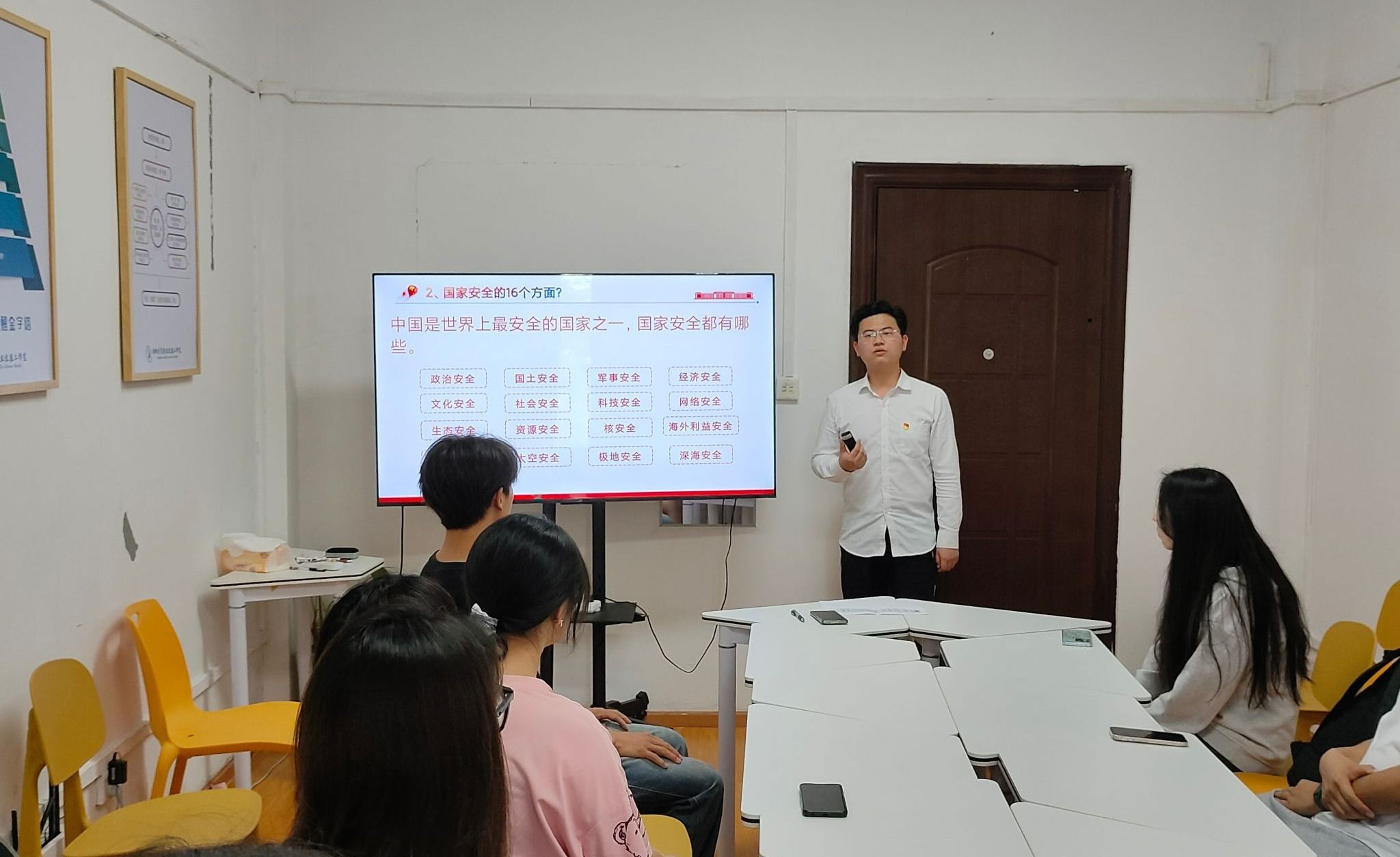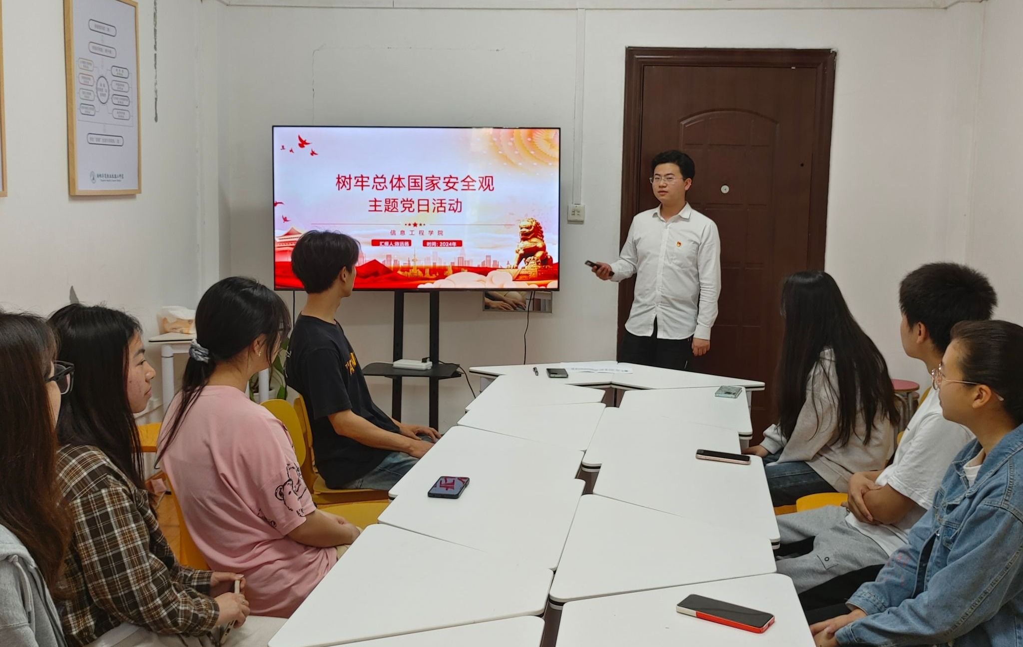 为加强国家安全宣传教育,增强学生的国家安全意识,推动学生在日常学习、工作和生活中树立总体国家安全观。2024年4月15日,信息工程学院学生第三党支部在学生社区开展了以“树牢总体国家安全观”为主题的学习活动。学生三支部书记陈远扬、支部发展对象、入党积极分子参加本次活动。