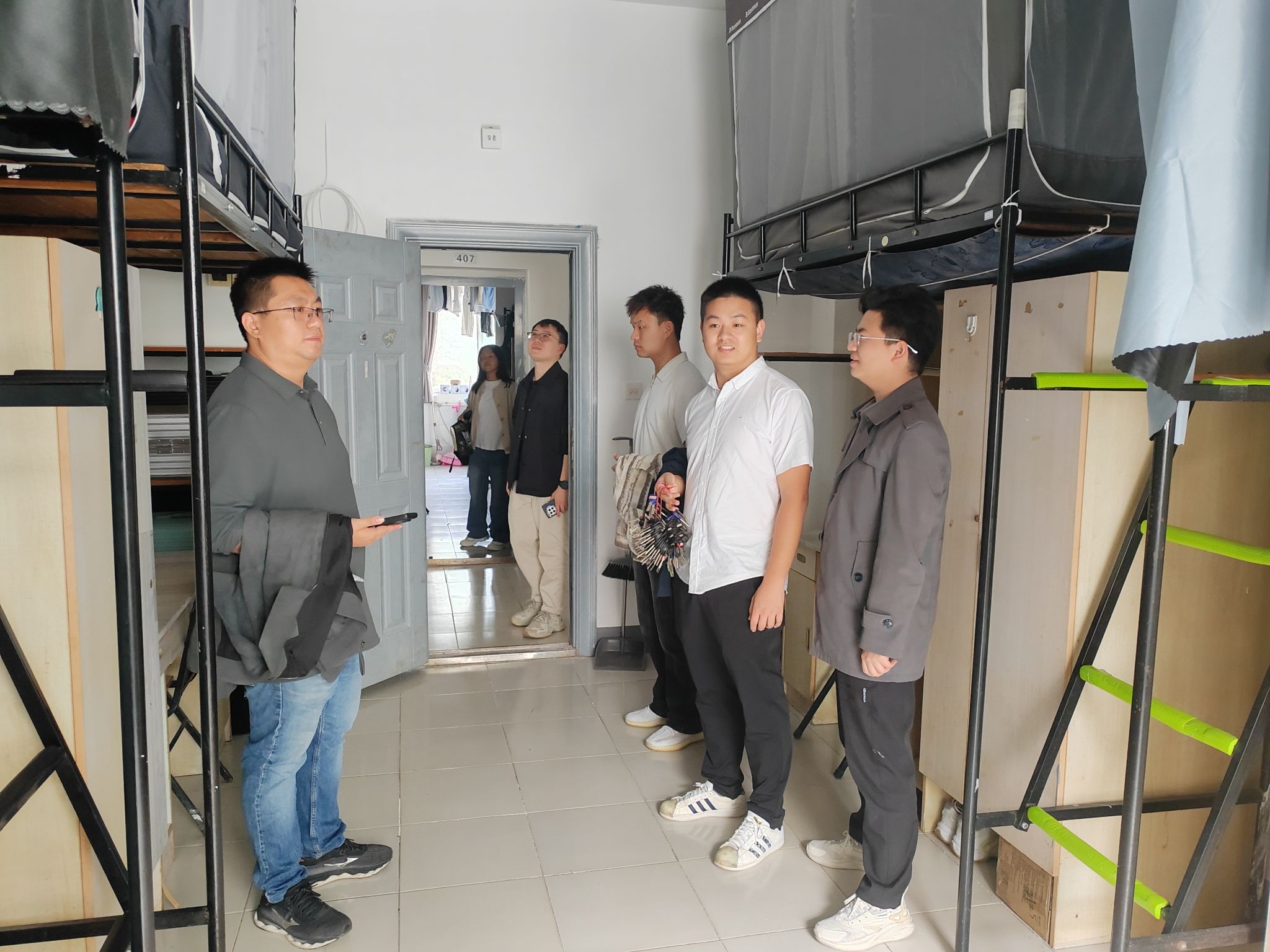 首先,在检查过程中,辅导员与同学们强调,宿舍是同学们的“第二个家”,要通过保持干净整洁的宿舍环境固化健康的生活习惯。其次,辅导员强调要多关心室友,共同营造安全、和谐、向善向美的宿舍文化氛围。最后,辅导员和同学们着重强调了安全问题,着重讲述违禁电器的种类及危害,同时不在楼道乱堆杂物,注意保持消防通道畅通,共同营造良好的寝室环境。