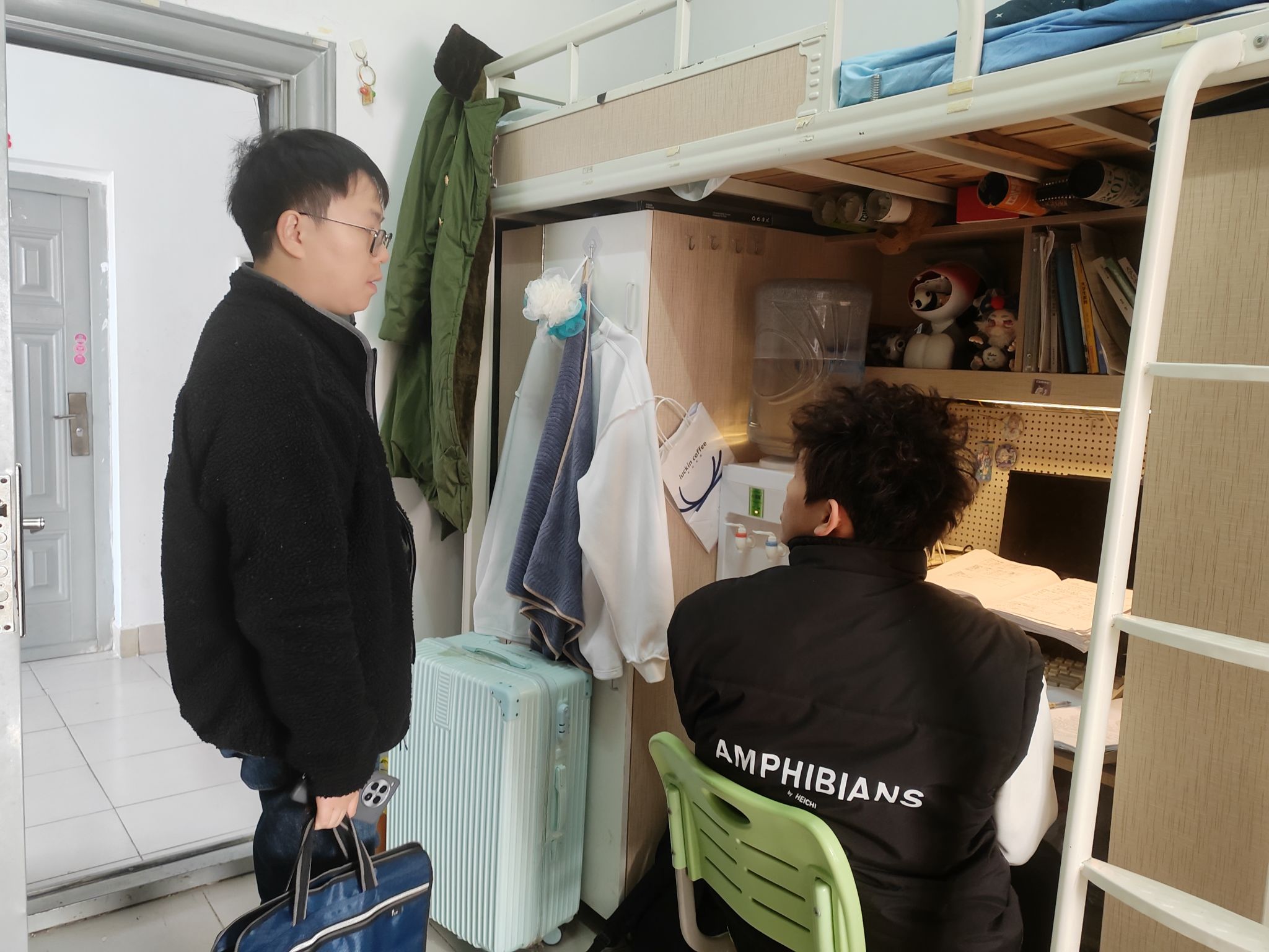 首先,辅导员走访学生寝室,查看同学们的考前复习状态,并叮嘱他们做好最后的冲刺,保持良好的状态参加考试。其次,在走访寝室的过程中,再次向同学们强调了诚信应考的重要性,多次考试有机会,作弊注定没学位;仔细向同学们介绍了大学生四六级考试相关的考试细则,向他们讲解beat365对于考试作弊的处理办法,提醒考生遵守大学生四六级考试的相关规定:不带入任何电子设备,不交头接耳,打手势等。最后,辅导员提醒同学们注意作息,以最好的状态应考,特别提醒同学们准考证和身份证要齐全,带好耳机等必要的考试文具。