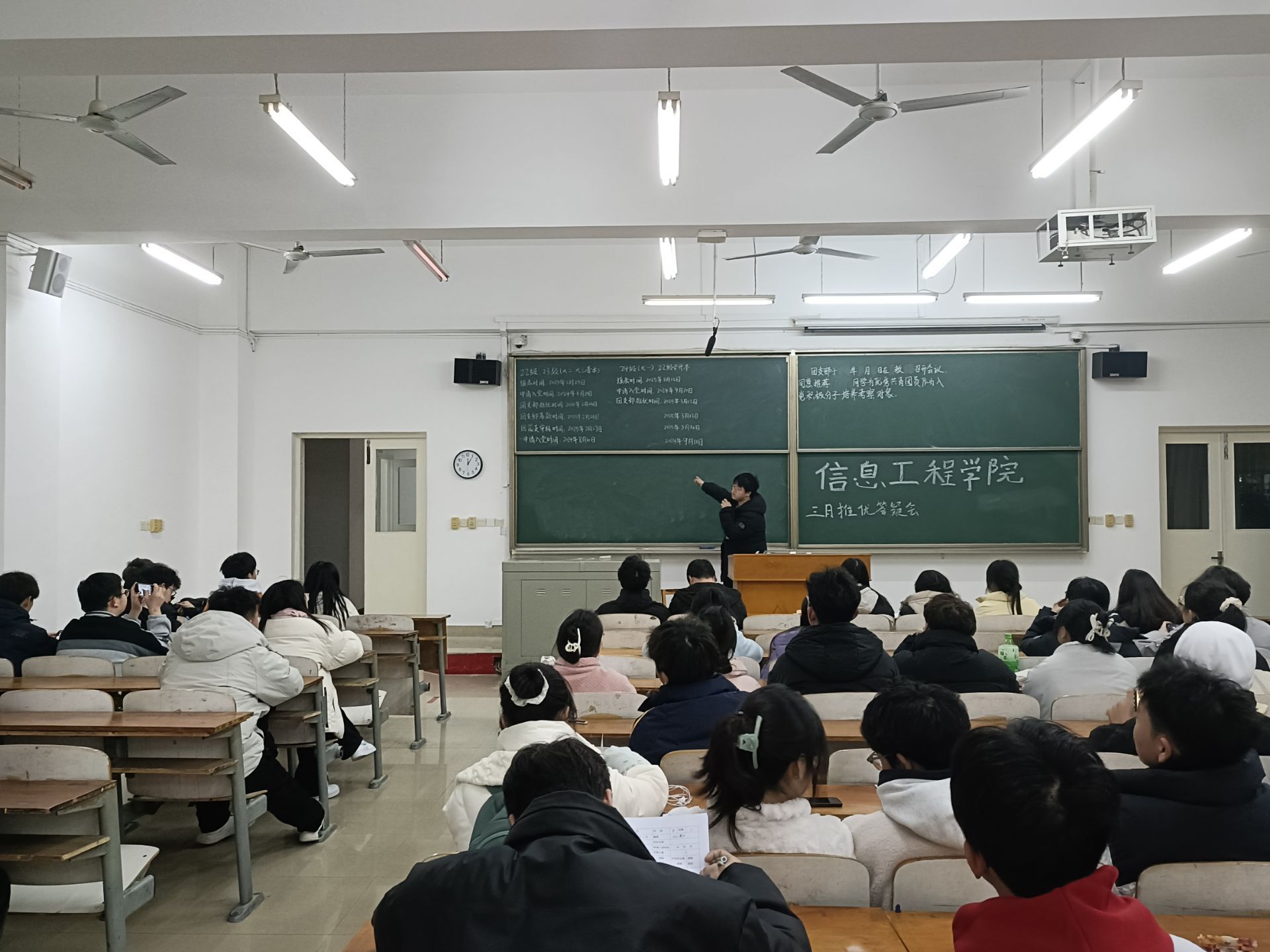 活动伊始,信息工程学院团总支组织部部长淳昊天对推优表各个栏目的填写规范进行了详细说明。从个人基本信息的准确录入,到学习情况、个人经历、自我鉴定等板块的内容撰写要点,都一一阐述,着重指出容易填写错误的地方。在答疑环节,同学们就填写细节踊跃提问,针对同学们的困惑,部长结合相关文件,耐心细致地逐一解答,确保每位同学都能准确理解政策。
