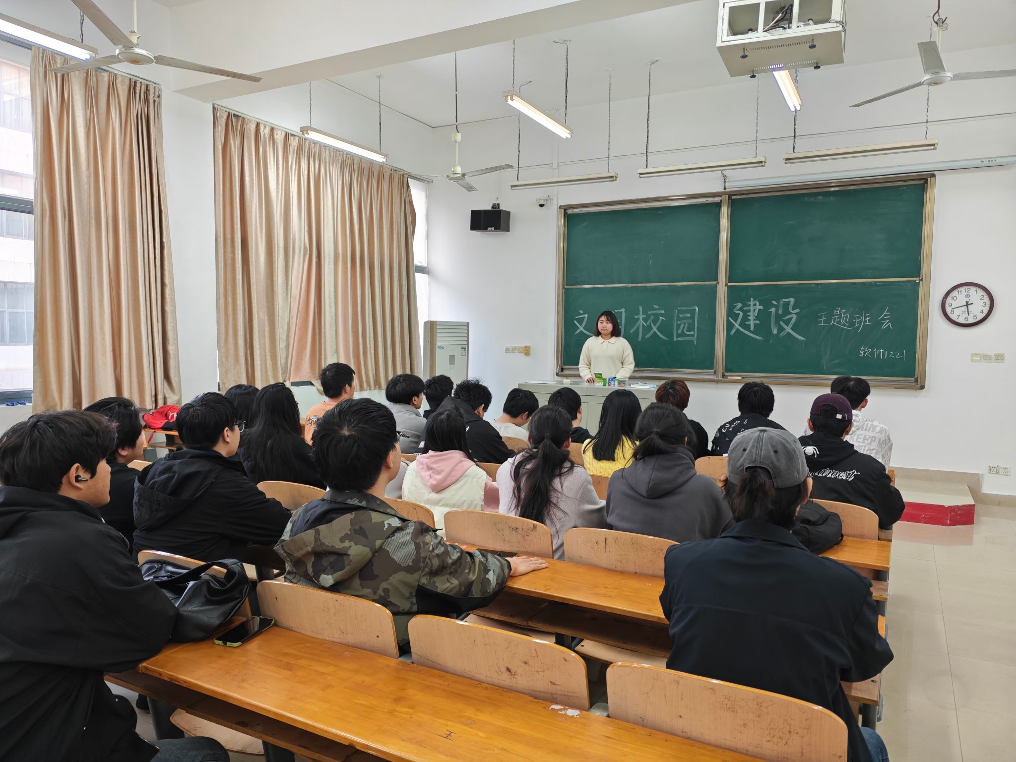 2025年3月20日,阳光透过斑驳的树叶,洒在校园的小径上,软件1221班的教室里正进行着一场关于“文明校园建设”的热烈探讨,这场主题班会如同春日里的一缕清风,为校园文明添上了一抹亮色。