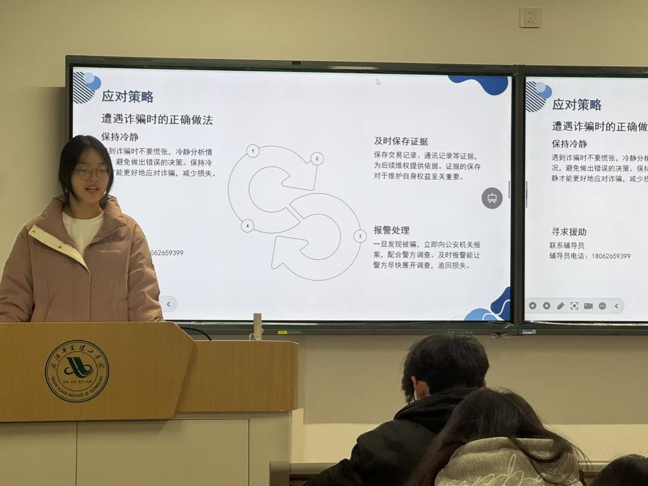 班会上,刘佳烩重点剖析了多个贴近学生生活的典型案例。成都多名大学生因 “零基础绘画、配音兼职” 被诱导办理高额培训贷款,最终课程无价值、兼职无收益;昆明 10 余名学生被假老师拉入虚假微信群,轻信 “绩效补贴申领” 通知泄露银行卡信息,总计被骗 6 万余元;南宁某学生通过短视频平台结识 AI 生成的虚拟 “护士” 网友,陷入情感诈骗后转账失联。此外,“脱离购物平台私下交易” 导致的老人被骗案例,也让同学们认识到诈骗陷阱的普遍性。