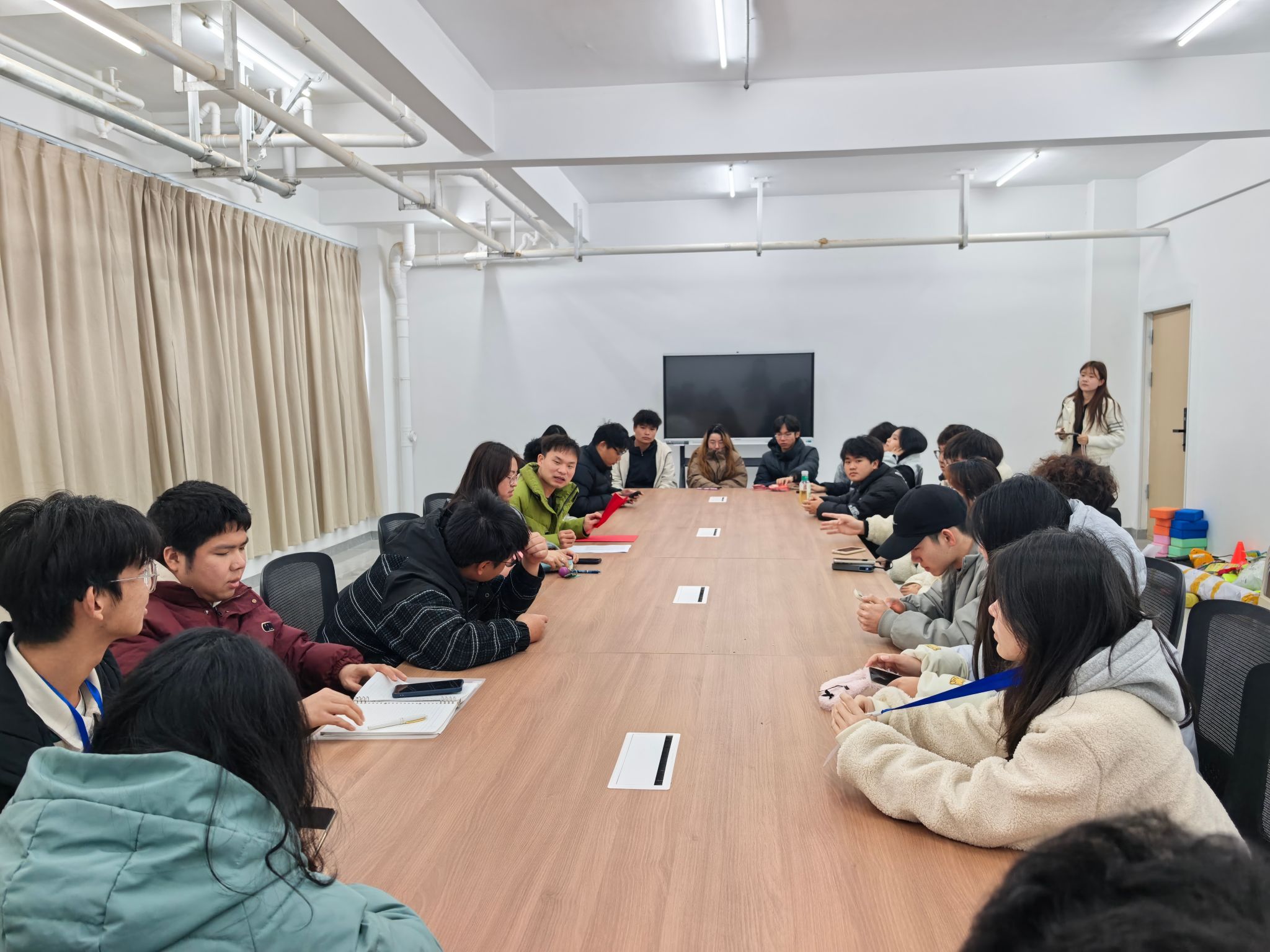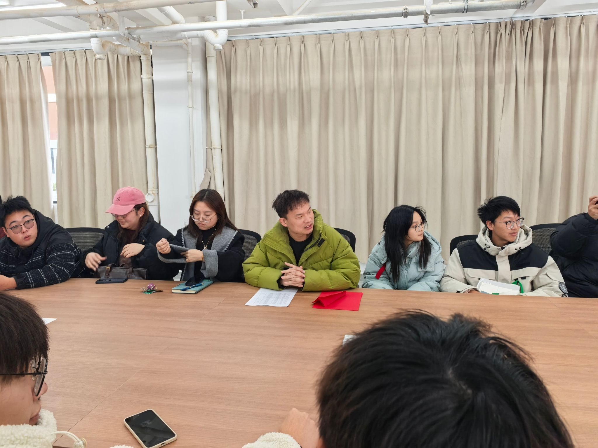 为确保2026年元旦游园活动顺利开展,营造喜庆、温馨的节日氛围,一场关于活动整体布置的专题会议于今日中午12:10在2-101教室准时召开。会议由团总支副书记李洋主持,辅导员邓雯老师,各部门部长、副部长悉数到场,共同为活动的圆满举办出谋划策。