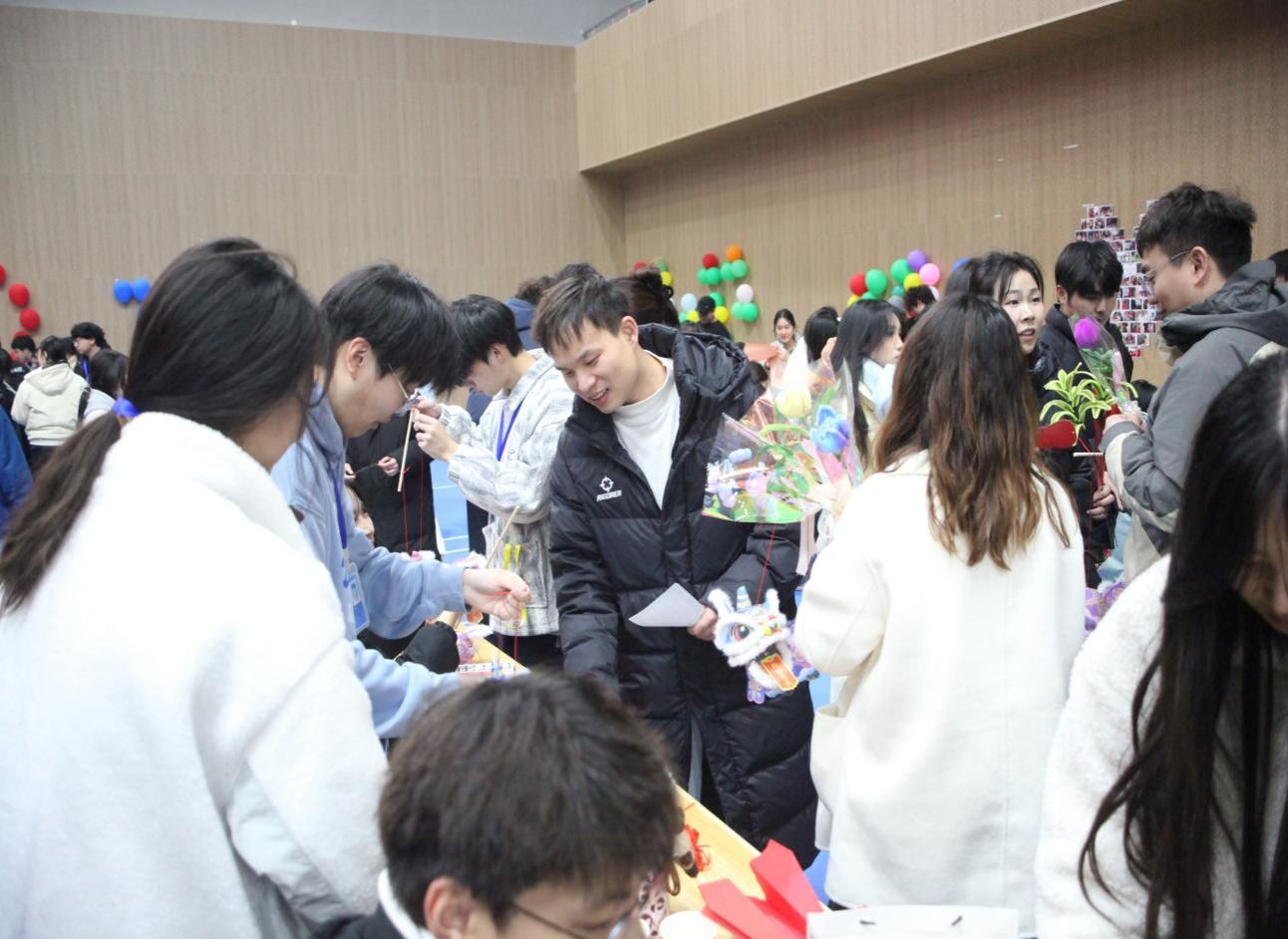除了趣味游戏,活动还融入了文化体验环节。师生们可亲手制作新年主题手作、书写春联福字,将美好期许凝于笔墨;校园内的打卡点也成为师生合影留念的热门地点,大家用镜头定格温馨瞬间,一张张喜庆的合影为节日增添了浓浓暖意。参与活动的同学表示,游园会不仅让大家感受到了传统节日的魅力,也在互动中拉近了彼此的距离,为校园生活留下了温暖的回忆。