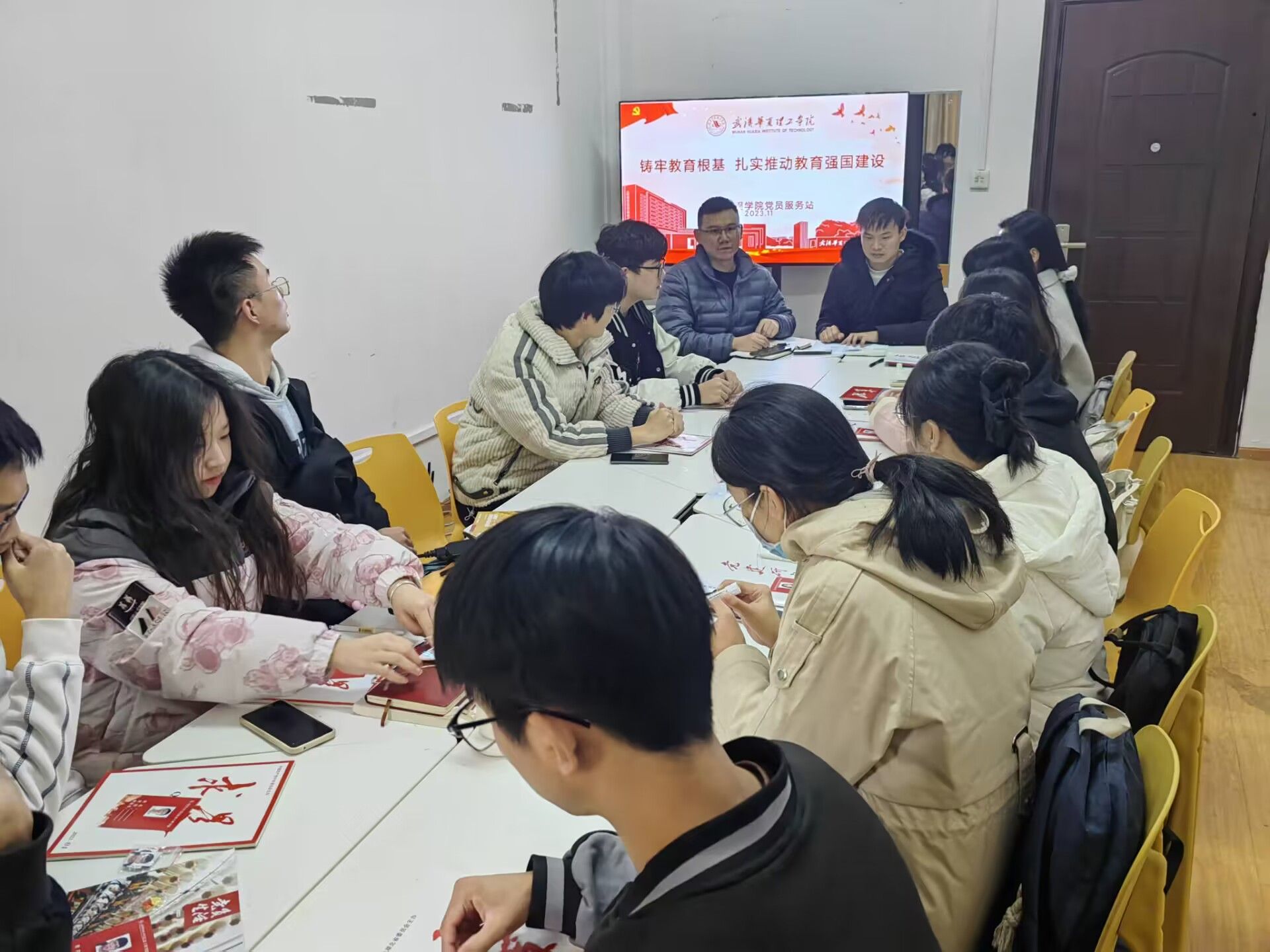 2023年11月15日,我院党员服务站在扬帆华夏职业生涯工作室开展了“铸牢教育根基,扎实推动教育强国建设”主题党日学习活动,团总支书记李洋,党员服务站全体成员参加活动,活动由党总支组织员吴乐主持。