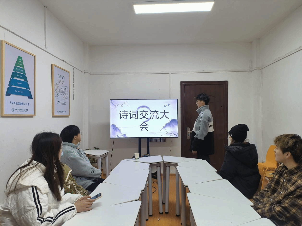 为进一步弘扬中华传统诗词之美,促进中华传统文化的传承和发扬,使同学们感受诗词美的熏陶,陶冶心情,启迪心灵,我院心协于2023年12月20日晚,在beat365官方网站“扬帆华夏”职业生涯工作室开展了诗词鉴赏大会。本次会议由心协副会长陈振浩主持,心协部长副部长及主席团参与。