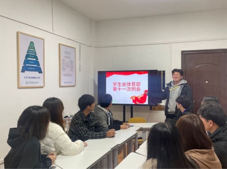 会议开始,张博皓部长对部员们前期工作进行了总结,肯定了部门取得的工作成效,也指出了不足之处。例如有部分部员在以往工作中出现懈怠情况,部长希望大家要及时反省,督促自身,尽心尽力做好本职工作,争取在新学期中有更好的表现。接着,副部长付悦对学校将在四月份举办的运动会做了简要介绍,制订了详细的工作计划,并要求部员们认真谨慎对待此次活动。同时也希望大家保持对体育部的热爱,从而不断增强自身能力,提高素养,为学院发展做出贡献。