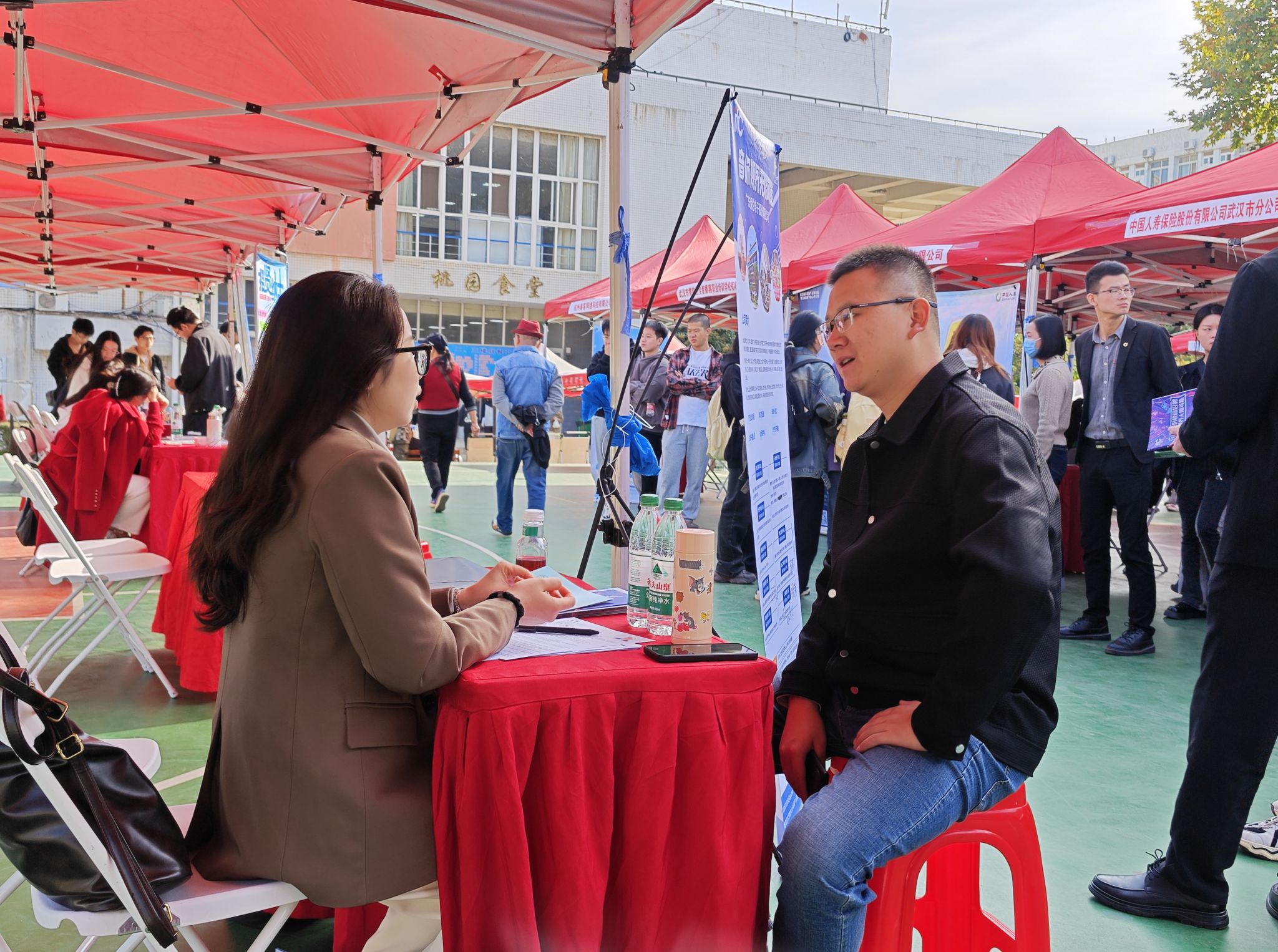 招聘会现场,学院党总支组织员吴乐,学工办主任张琦,毕业班辅导员李勇、邓雯、李洋和企业面对面接触,并就新形势下学生就业问题展开交流。毕业生们带着专业知识和满腔热情,穿梭于各展位,积极与招聘人员交流。