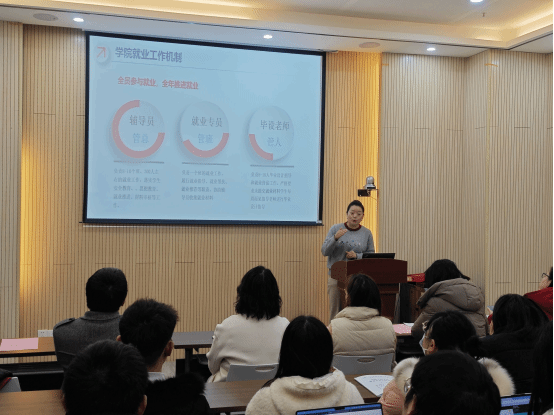 会议最后,执行院长夏婷作了动员讲话,鼓励全体就业专员同心协力,以饱满的姿态迎接挑战,扎实推进学院各项就业工作安排。