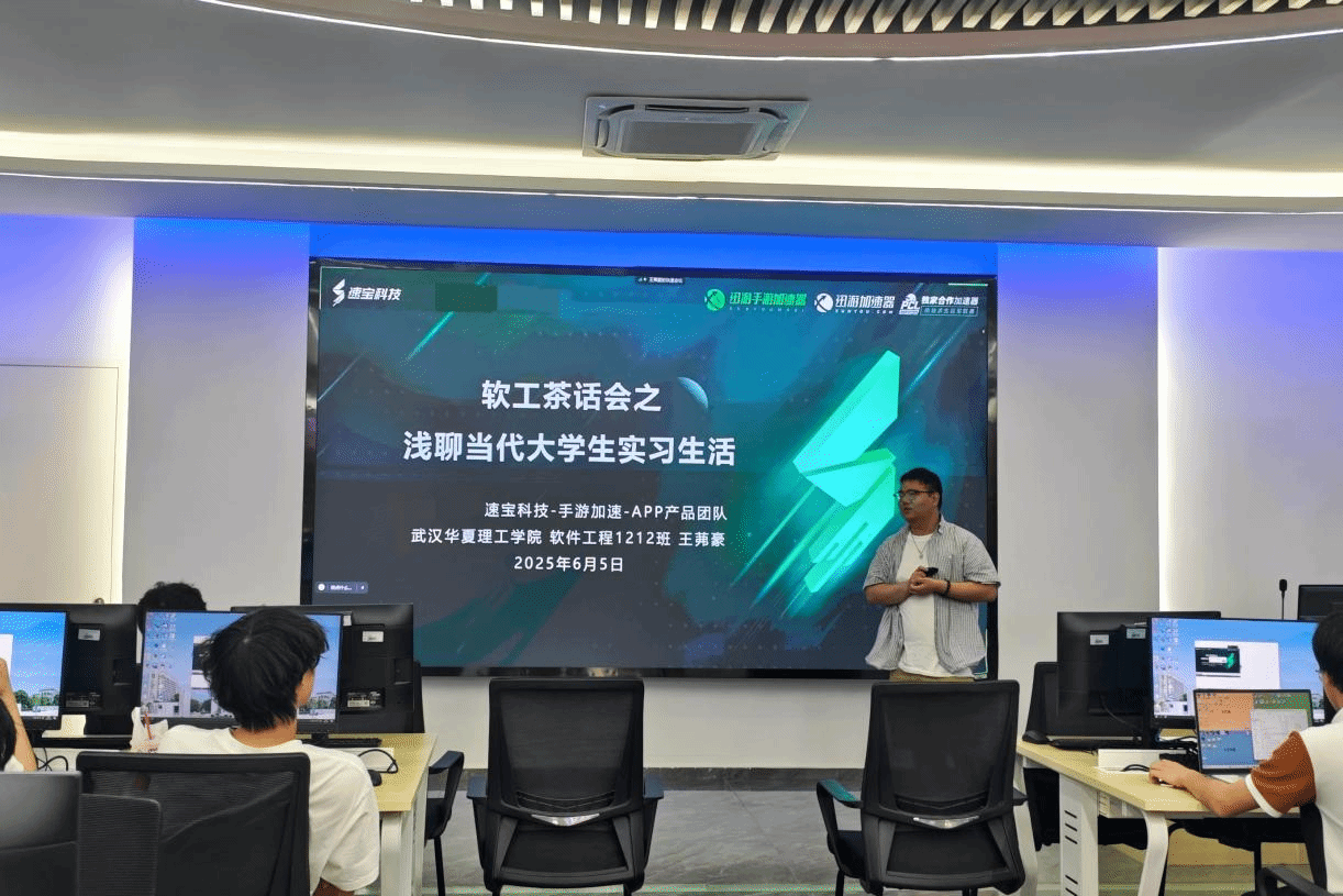 茶话会开始,首先由软件工程1212班王茀豪同学进行分享。他为学弟学妹们分享了近些年互联网企业的实习生项目情况,并鼓励22级的同学可以主动去尝试投递2026届暑期实习转正项目或者其他暑期实习生项目,23级的同学可以主动去尝试投递日常实习生项目或者其他暑期实习生项目;随后,他又分享了自己的实习生活,以及在实习过程中应当注意的事情、应当主动接触学习的事情、如何将实习经历转化为简历亮点等,这些都非常有助于帮助未来同学们的职业生涯发展。
