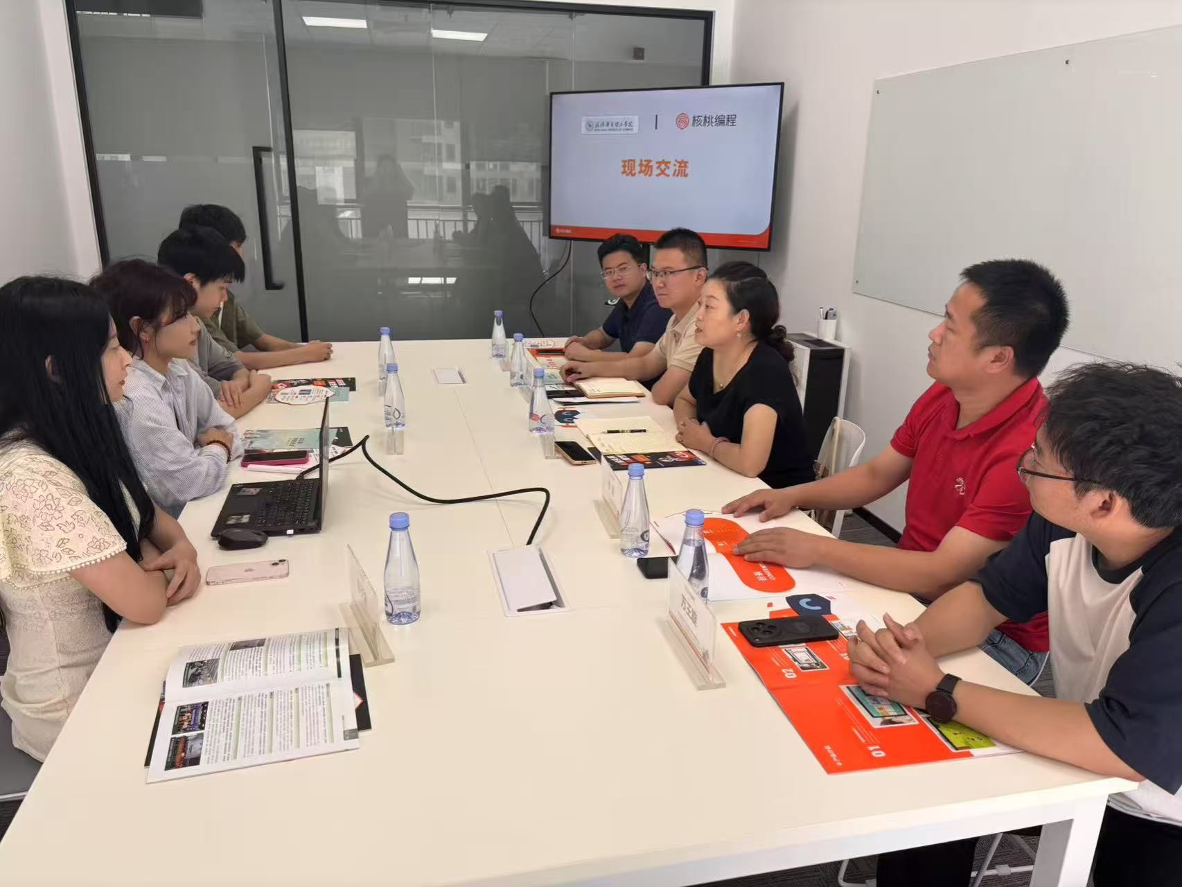 核桃编程武汉校招负责人李梦宇热情接待了我院一行,带领我院实地参观了公司项目展示区及办公环境,介绍了企业发展历程、企业文化、薪酬福利、工作内容等情况,特别强调了对信息技术相关专业岗位人才的迫切需求。我院2024届毕业生乐经坤、金浪作为优秀代表在座谈会上表达了对母校的感谢,两位校友作为入职不满一年的新人,已经能圆满完成各项工作任务,并且取得了较好的业绩,计划在企业继续发挥才干,创造更多更大的业绩。