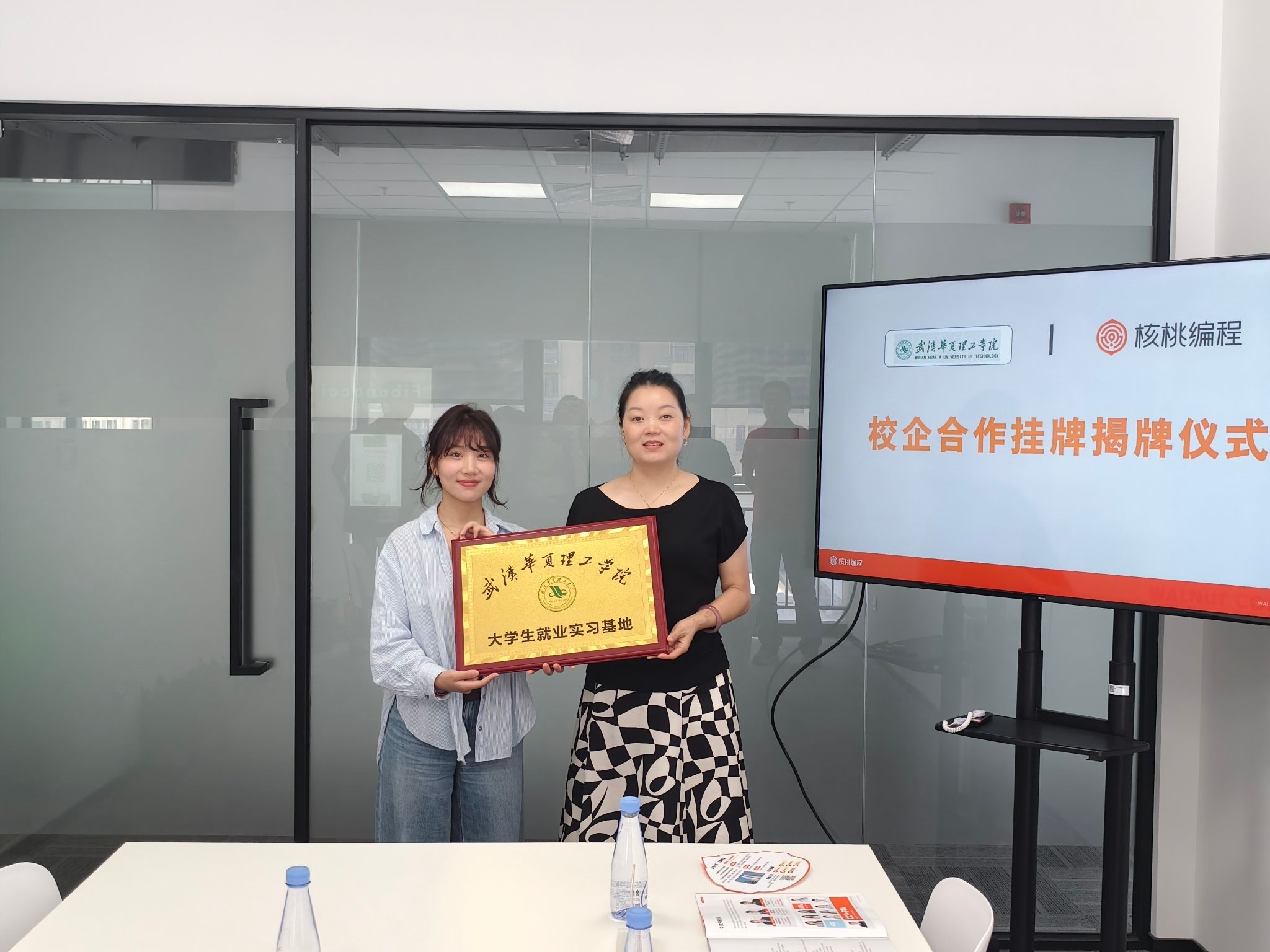 张平对企业的热情接待表示感谢,介绍了学院的办学特色、专业设置及人才培养成果,表达了希望与核桃编程建立长期、稳定合作关系的诚挚愿望,希望双方以此次访企拓岗为契机,促进人才培养与企业用人需求的精准对接,实现双向提升、共同发展。最后,我院为企业授予了大学生就业实习基地牌匾。