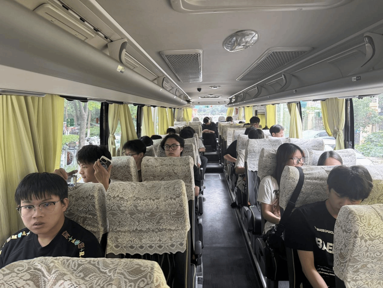 傍晚时分,满载收获的学生有序登车,踏上返校大巴。归途中,学生们的分享传递着对游戏行业岗位的新认知与成长的新目标。