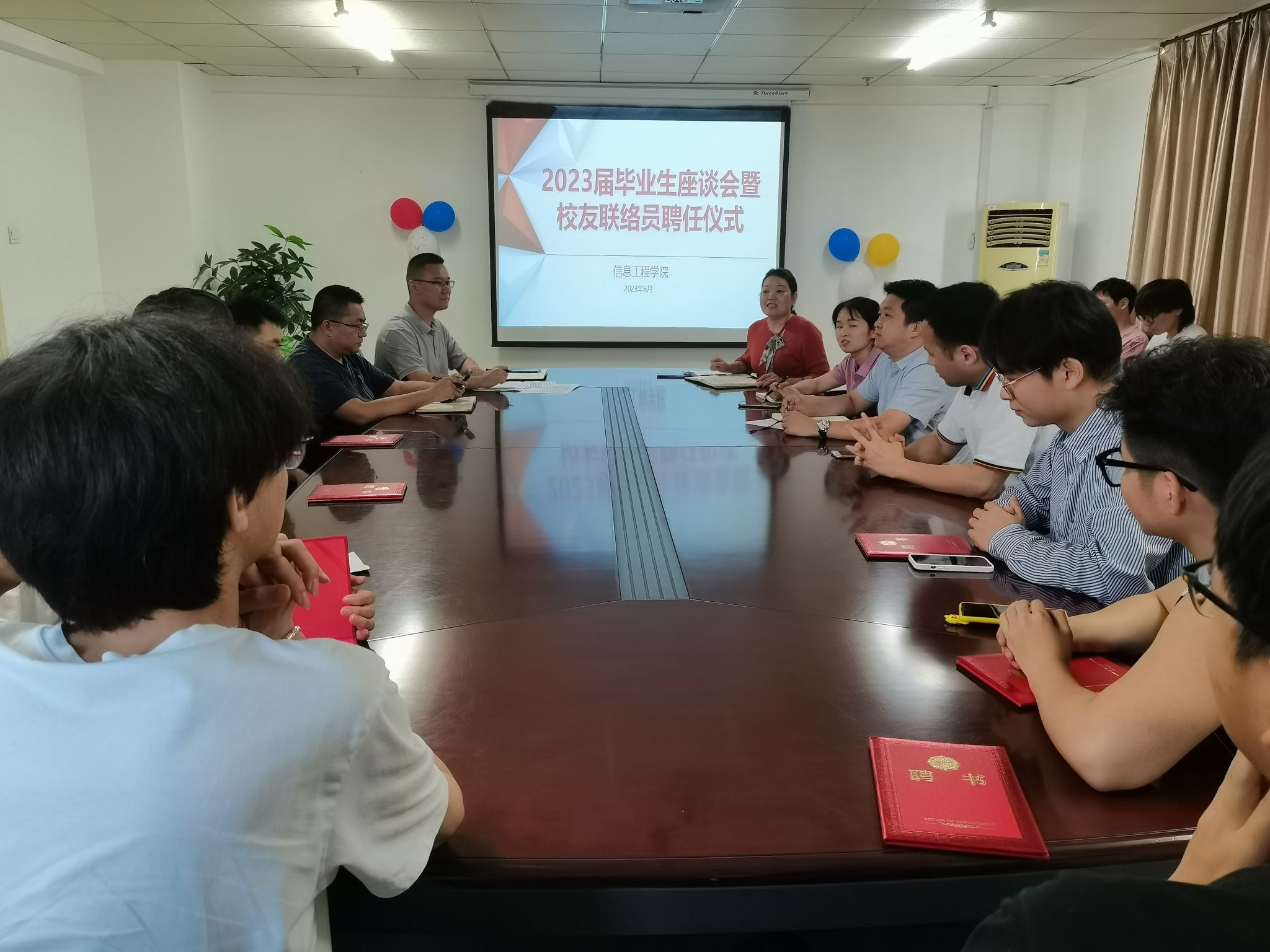 6月1日下午,我院在702会议室举行2023届毕业生座谈会暨校友联络员聘任仪式。学院党总支书记张平,学工办主任张琦,毕业班辅导员彭贝贝、熊俊、夏巧林和校友联络员参加了会议,会议由党总支组织员吴乐主持。