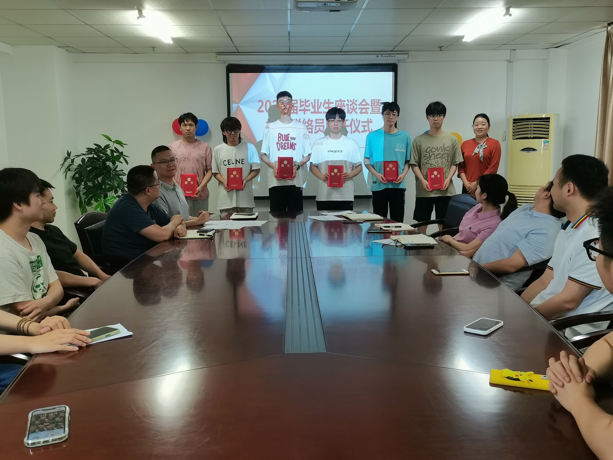会议开始,吴乐介绍了各专业最新的就业去向落实情况,希望校友联络员能继续发挥引领作用,搭建各班的沟通桥梁,辅助做好就业帮扶和统计工作。计算机1193班綦柳同学结合自身的学习生活体验,回顾了大学四年的点滴,向母校表达了感激之情。座谈会环节,校友联络员对课程设置、学科竞赛、校园活动等等提出了宝贵的建议,希望母校的发展越来越好。现场为校友联络员颁发了聘书,师生一起合影留恋。