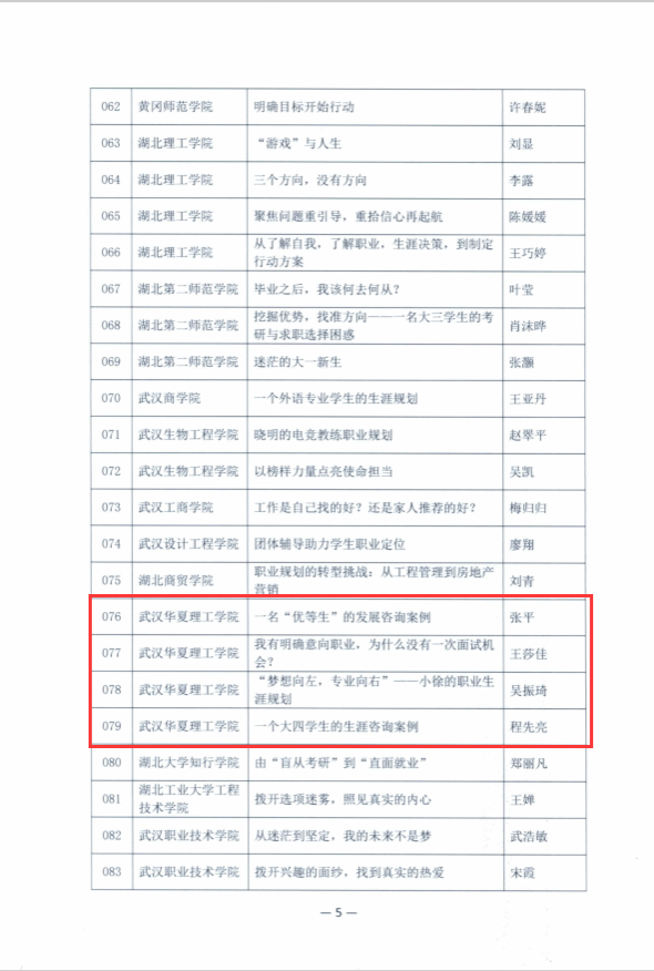 近日,湖北省高等学校毕业生就业指导服务中心公布2023年湖北省优秀生涯咨询案例名单,beat365四个案例成功入选,入选数量位居全省同类高校榜首。