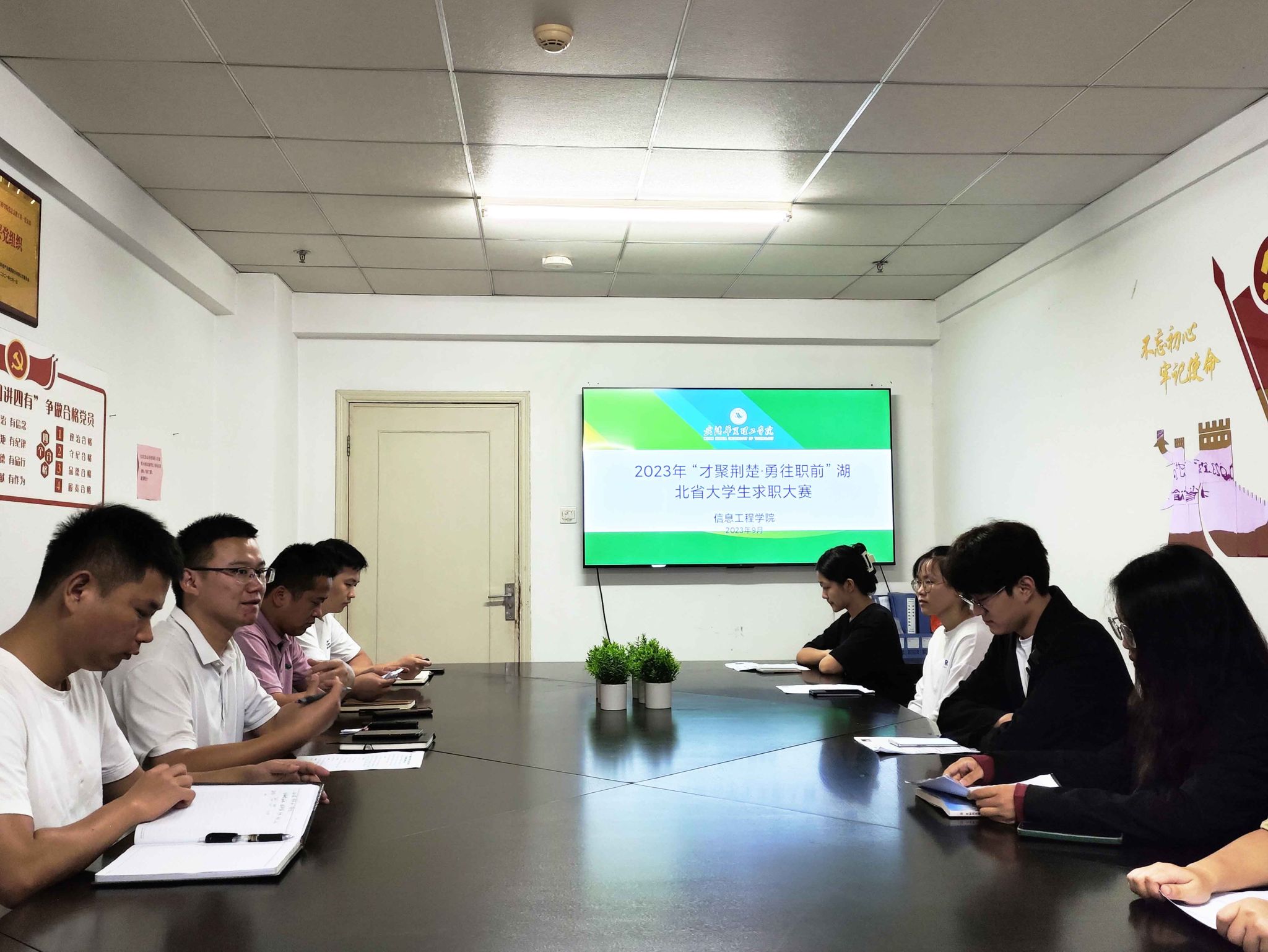 2023年9月21日12:50,我院在综合楼708办公室举办2023年“才聚荆楚·勇往职前”湖北省大学生求职大赛院内选拔赛,经过自主报名、简历筛选、辅导员推荐,共计7名学生入围院级选拔赛,评委由党总支组织员吴乐、辅导员李勇、徐广、丁启航担任。