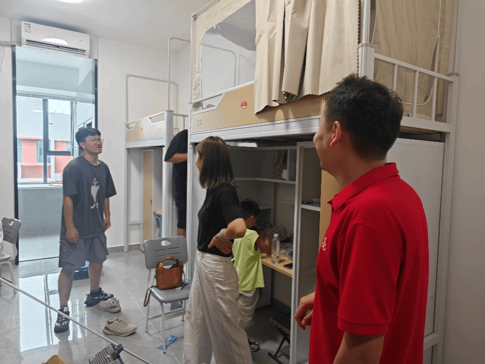 完成报到处的工作后,张老师前往新生宿舍。进入宿舍后,他查看了床铺、储物柜、空调等设施的配备与使用情况。看到新生们正在整理个人物品,张老师与他们交流大学生活的准备情况,叮嘱新生注意宿舍用电安全、保持宿舍卫生,并鼓励新生们与室友友好相处,尽快建立良好的人际关系。对于家长们关心的宿舍用水、用电时间等生活问题,张老师也一一说明,缓解了家长们的担忧。