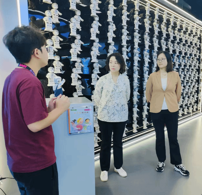 在优必选公司的热情接待下,工作室成员参观了公司的展示中心,详细了解了优必选在服务机器人、教育机器人以及人工智能领域的创新成果。随后,双方举行了座谈会,就如何整合校企资源、促进科技成果转化进行了深入讨论。