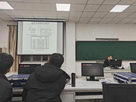 培训活动由夏婷、袁丽平、王赜坤、章科峰等老师组织实施,针对工作室学生前期遇到的难点和疑问进行讲解和实践,比如DS18B20等传感器的原理和应用。不仅提升了学生对于单片机的理解和专业知识贮备,还为后期的蓝桥杯竞赛打下坚实的基础。