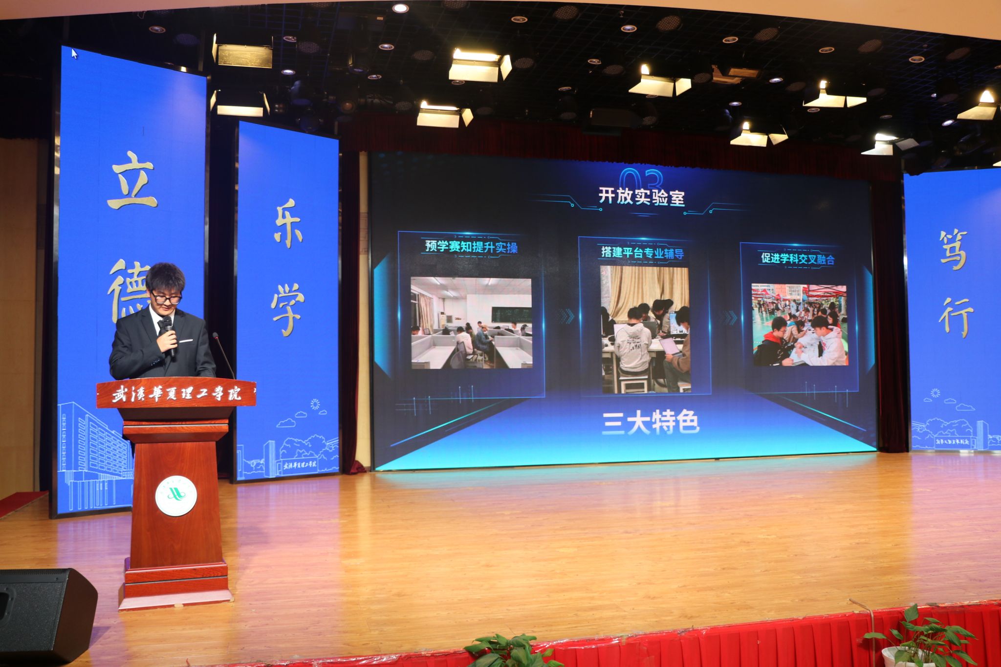 紧接着,来自人工智能与机器人协会的刘子康作为学生代表上台演讲,分享了他在协会学习的历程和在各类创新创业大赛中的宝贵经验,他鼓励在座同学积极参与,勇于挑战自我。随后,由开放实验室的学生负责人许文耀带来了精彩的分享,介绍了开放实验室的建设初衷、资源优势、开放实验项目成果及未来规划,激发了同学们对科研探索的热情。