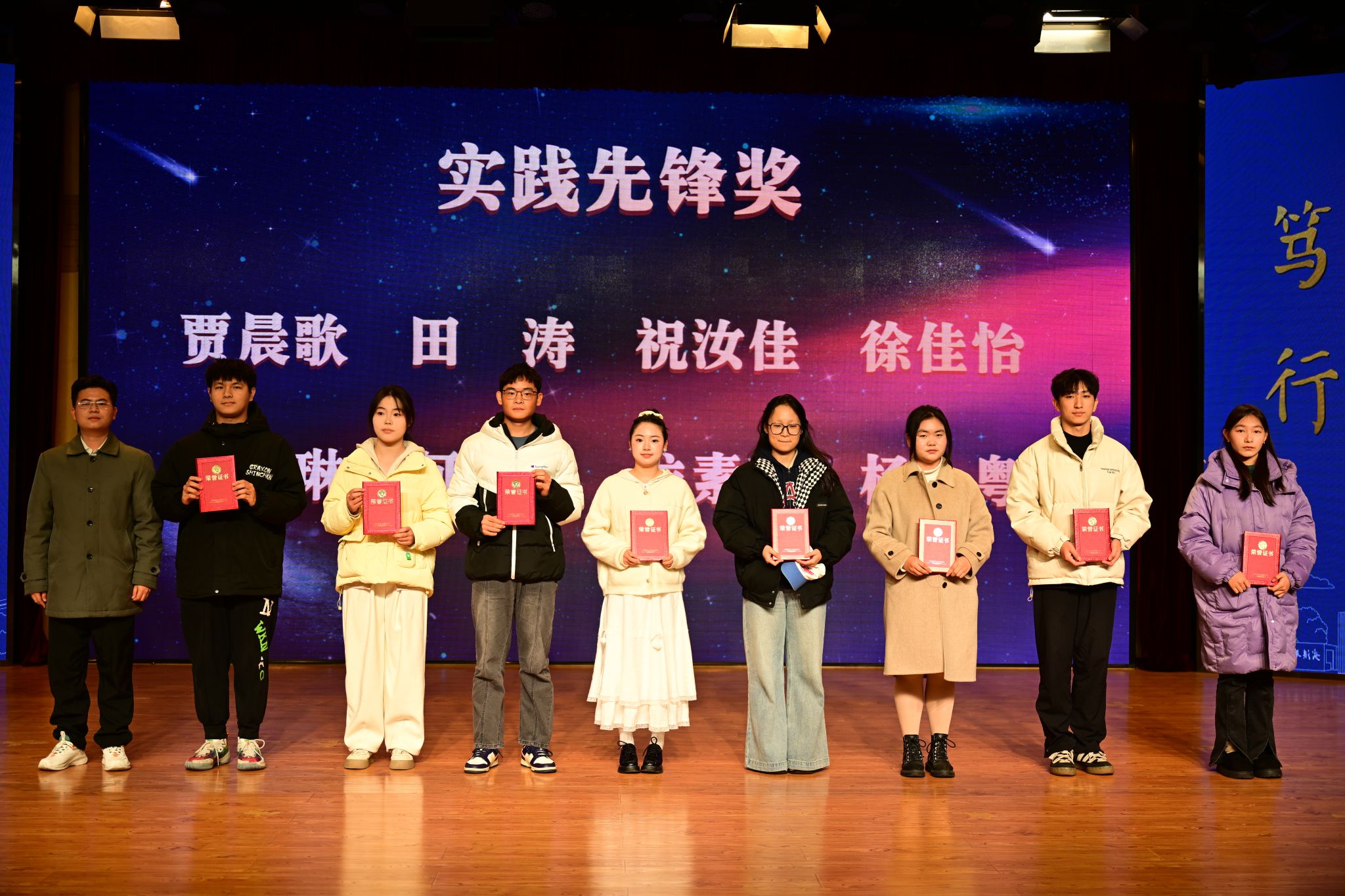 在“标兵班集体”获奖代表交流发言环节,胡锐作为标兵班集体的代表分享了班级建设经验和学习心得,展现了富有凝聚力和荣誉感的班集体在学科竞赛、文体活动和专业证书考取中取得的一系列成果。而“沐光实践队”的优秀代表李嘉惠则通过实践过程中图文展示,展现了队员在乡村支教、文旅推广和生态保护方面做出的努力,通过讲述一则则在实践过程中的感人故事,传递了实践育人的理念。