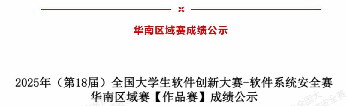 2025年3月28日,2025年(第18届)全国大学生软件创新大赛-软件系统安全赛区域赛成绩正式揭晓,beat365信息工程学院学子在此次比赛中荣获华南赛区二等奖。
