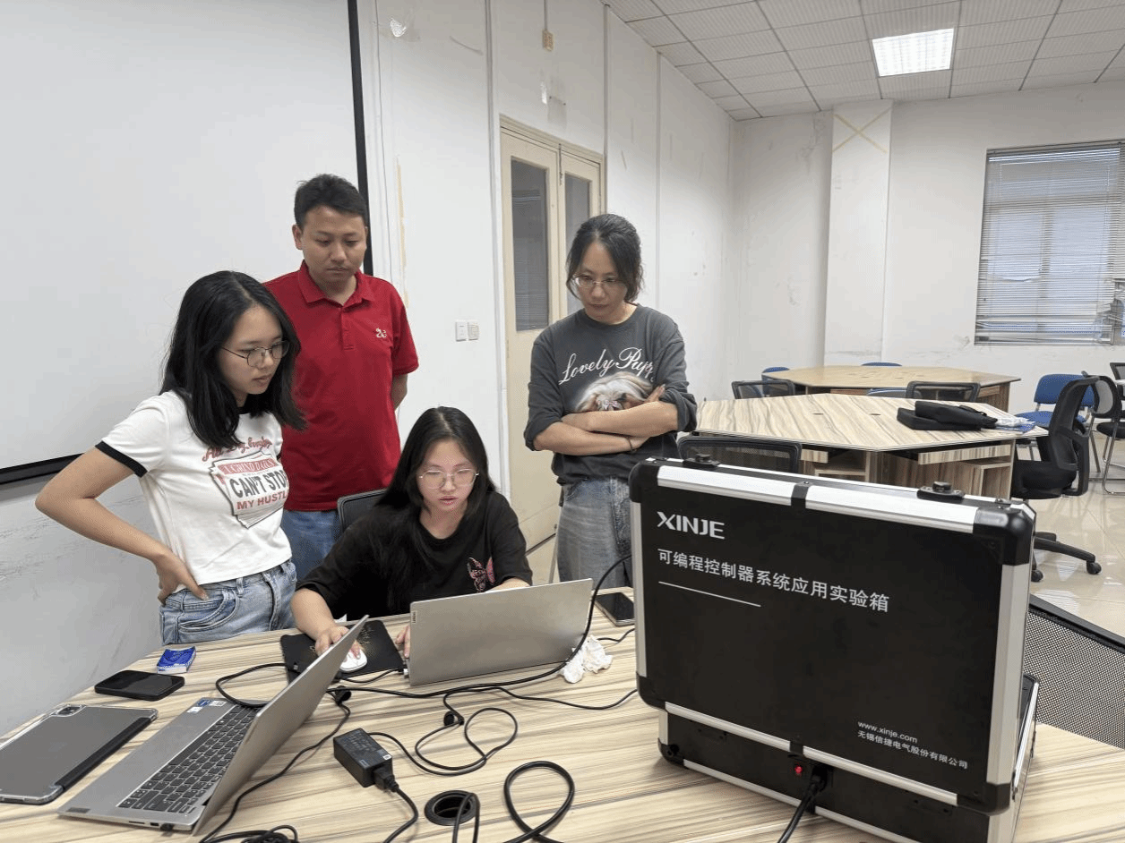 在选拔赛现场,各参赛小组依次进行了项目演示,围绕XINJE可编程控制器系统应用实验箱展开激烈角逐,充分展现了在工业自动化控制领域的创新应用能力。通过实验箱完成PLC编程、系统调试等实战操作。各团队在限定时间内高效协作,展示了从方案设计到功能实现的全过程,充分展现了团队的创新能力和技术实力。指导老师对各组的表现进行了细致点评,从技术实现、项目逻辑、现场表达等多个维度提出了优化建议,帮助选手们提升技术细节和临场应变能力为同学们备战周六的省赛提供了宝贵指导。