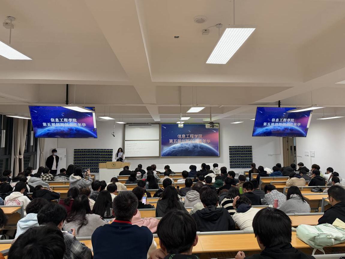 2025年11月6日晚,信息工程学院第五届创新创业嘉年华在梧桐湖校区教学楼B319、B320顺利举行。辅导员李洋、邓雯、慧玲、张万俊与全体大一新生齐聚一堂,共同开启这场以“科技创新 引领未来”为主题的科创盛宴。活动通过成果展示、经验分享、协会推介等环节,全方位展现学院创新创业教育成果,为新生搭建起探索科创、交流学习的优质平台。