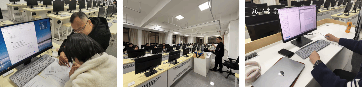 此次获奖阵容中,大一新生占比达50%,成为赛事中的“新生力量”,展现了学院人才培养的良好梯队。这份成绩的取得,离不开学子们的刻苦钻研与老师们的悉心指导。备赛期间,学院机房每晚都灯火通明,参赛学生放弃休息时间,沉浸在算法调试与赛题攻坚中。苏永红、周熠、王绪梅、谭采薇、李洋、邓雯、雷雨鹏、汤琳等多位老师全程指导,周熠与闫京生老师更是经常亲临训练现场,针对赛题难点、编程技巧进行精准点拨,为学生答疑解惑。