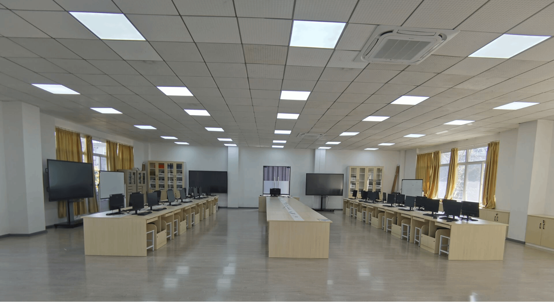 人工智能与机器人实验室,是信息工程学院重点实验室,始建于2021年,实验室面积230m2,该实验室紧紧围绕“抓基础、重实践、促创新”这一宗旨,以积极培养具有创新精神和创新能力的高级工程技术人才为目标,以创新和实训为培养核心,以行业需求为导向。实验室目前有软硬件资产共计145项,包括30台学生机、1台教师机、1台服务器,采用云桌面管理系统;还配置有21台Aelos Smart机器人、2台Roban机器人、10套AI智能车臂系统开发套件、2套创意之星标准版套件、1台SPARK教学机器人、1套移动机器人竞赛平台、1套半仿人智能机器人开发平台、3套机器视觉/语言教学平台、15套深度学习软件教学平台、12套AI机器视觉/语言教学等先进的硬、软件设施与平台。