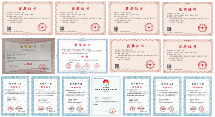 近几年,学生在蓝桥杯全国软件和信息技术专业人才大赛、RoboCom机器人开发者大赛、中国大学生计算机设计大赛、中国高校智能机器人创意大赛、睿抗机器人开发者大赛、湖北省大学生智能机器人创意竞赛、"挑战杯"大学生课外学术科技作品竞赛等赛事中获全国一等奖15项,二、三等奖25项;获湖北省一等奖32项,二、三等奖50项。
