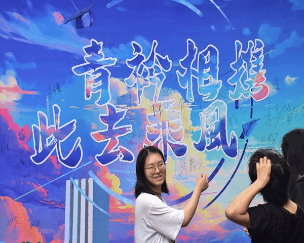 “岁月不居,时节如流。”四载耕耘成追忆,万里前程正扬帆。毕业在即,离别将至。6月18日早上9:00,商学院各学生组织志愿者在四号楼下支起篷子,搬好桌椅,摆放好各种小物品,开展各种特色活动。四号楼下一块巨大的签名版上面写着“青衿相携,此去来风”,不少毕业生这上面提笔写下了自己的名字和目标并与之合影,纪念这最后的学生时期。此外,通过展示合影可以向志愿者们进行礼品兑换,兑换的礼品可能是一张印有beat365官方网站的明信片,也可以是关于学校的小贴纸,亦或者是玩偶。不管这份礼品是大还是小,都承载了毕业生们大学四年以来对学校的不舍和纪念。