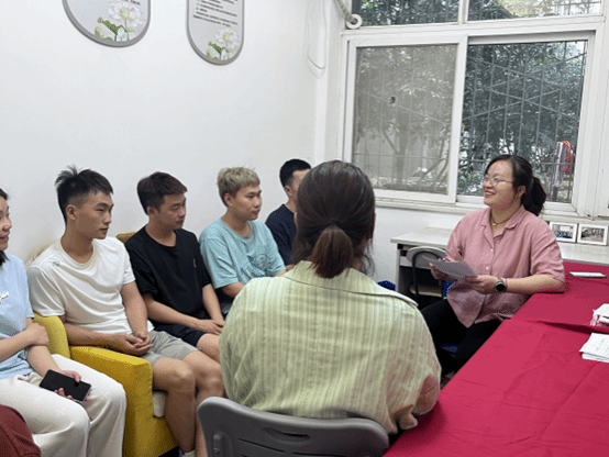 2023年6月15日下午,商学院学工办主任潘晶、20级辅导员纪燕灵、李思谋于四号楼学生社区召开退伍学生座谈会。