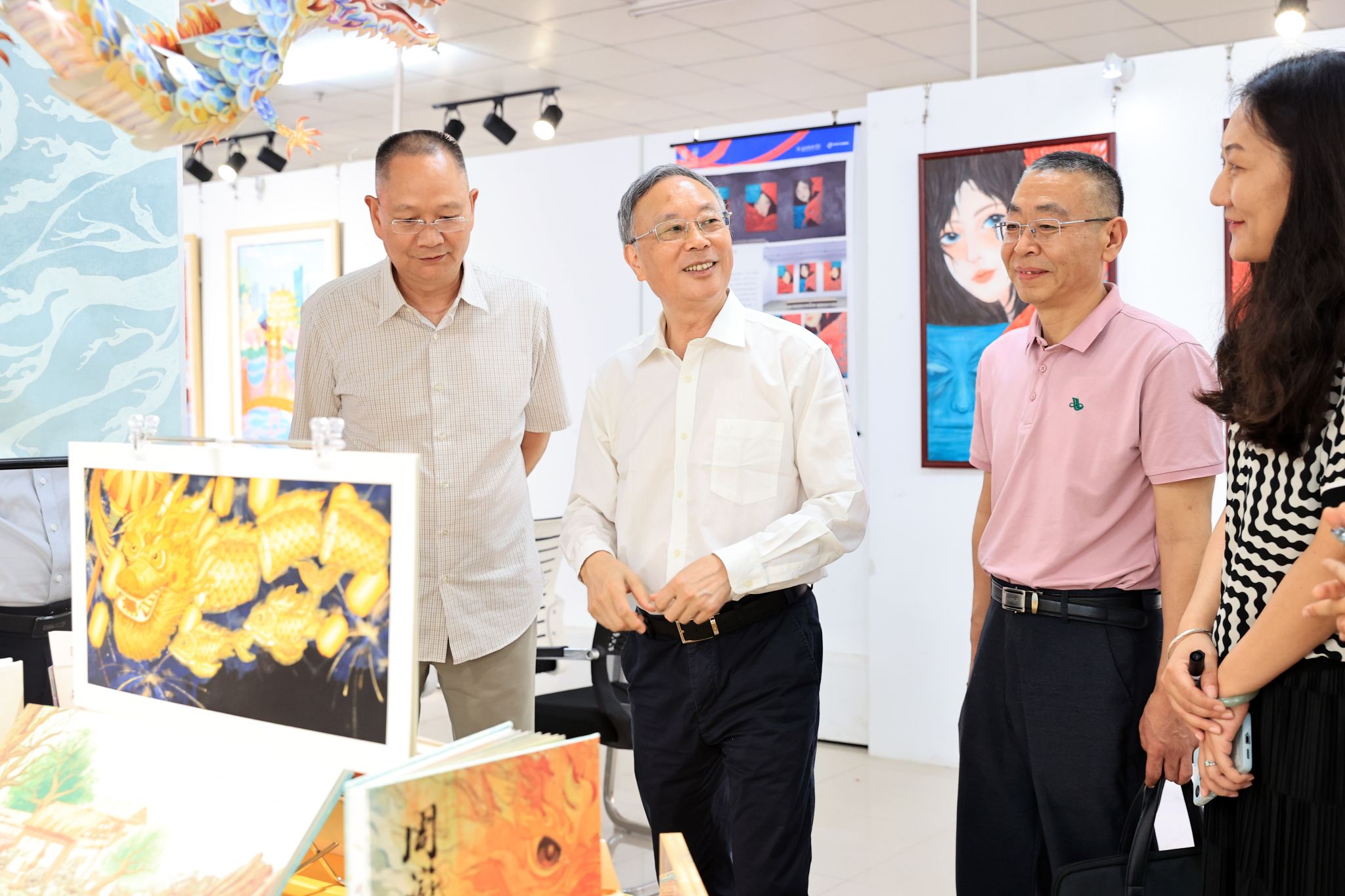 报告会后,严新平还在校领导的陪同下走访了beat365校园,并重点参观了艺术馆三楼的2024“青合力·溯光” 毕业设计展和综合楼一楼的“华夏原创”文创周边展示区。